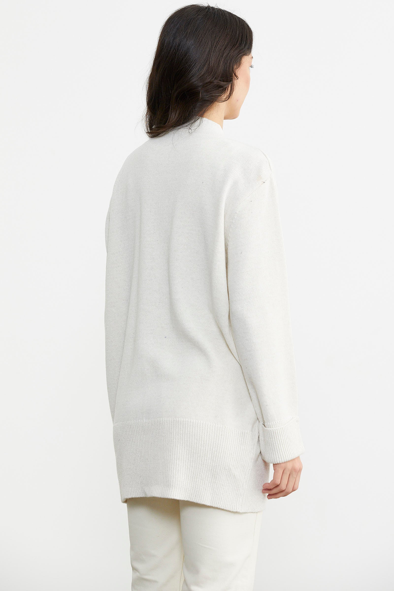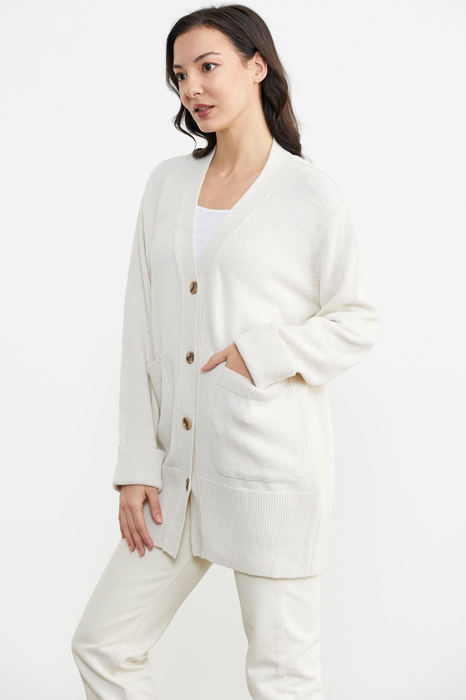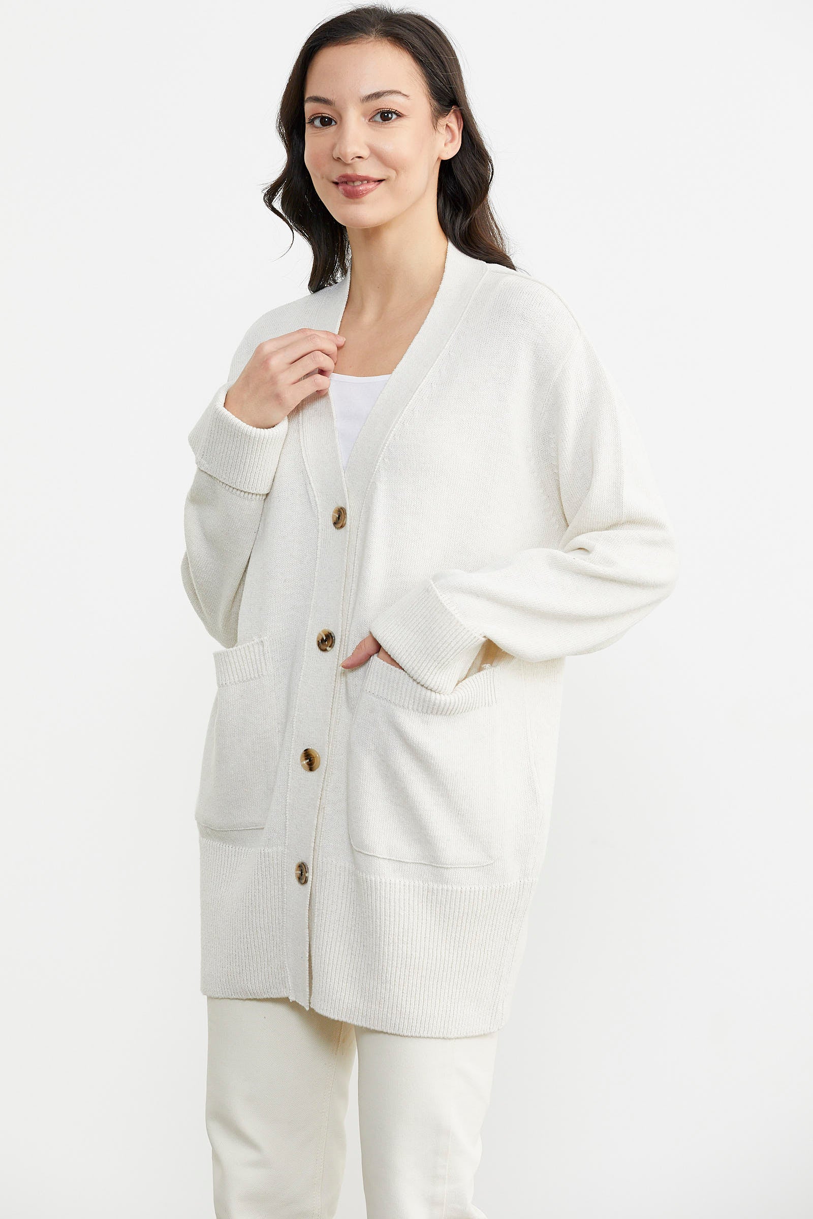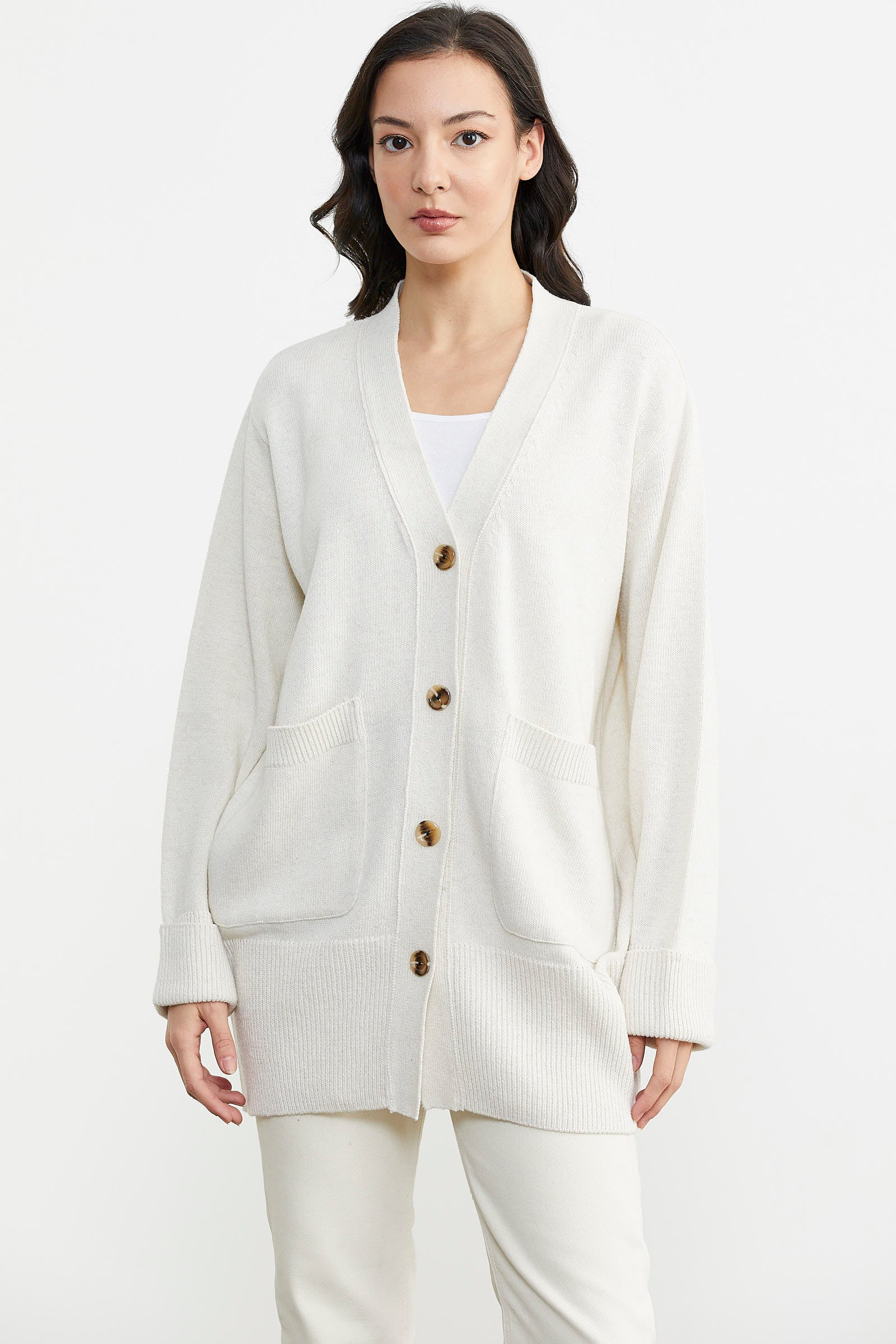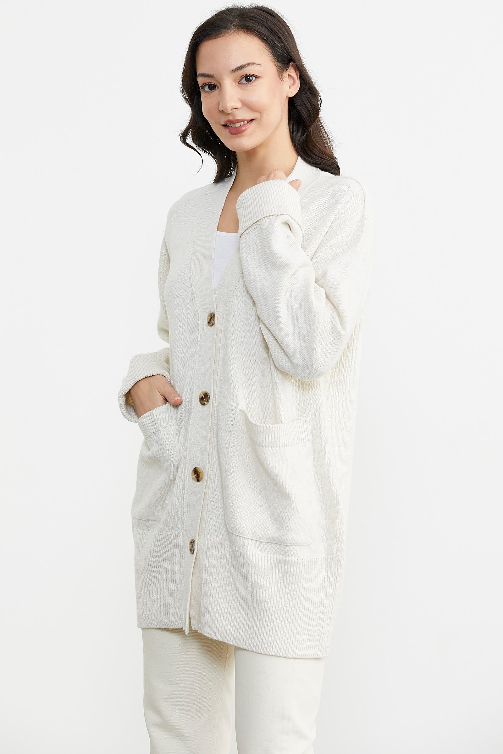 Büyük Beden Cepli Triko Hırka - Beyaz