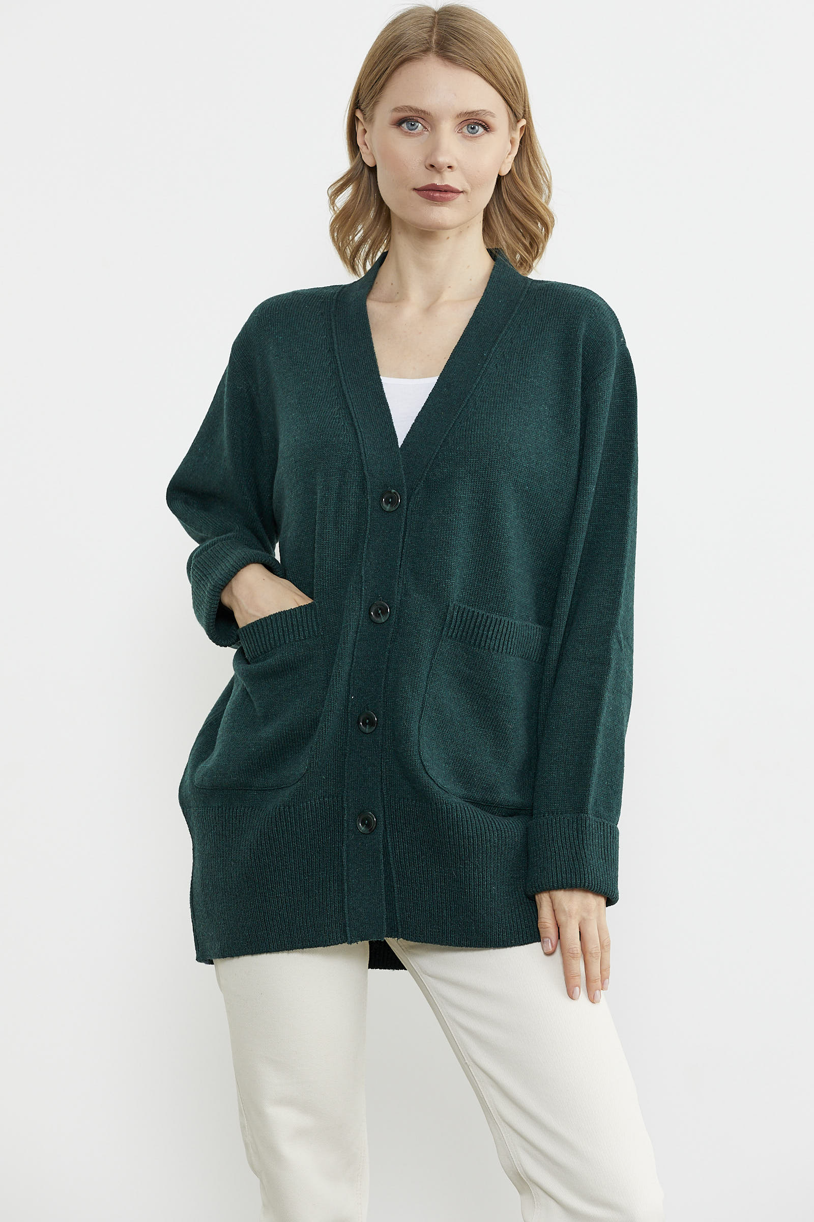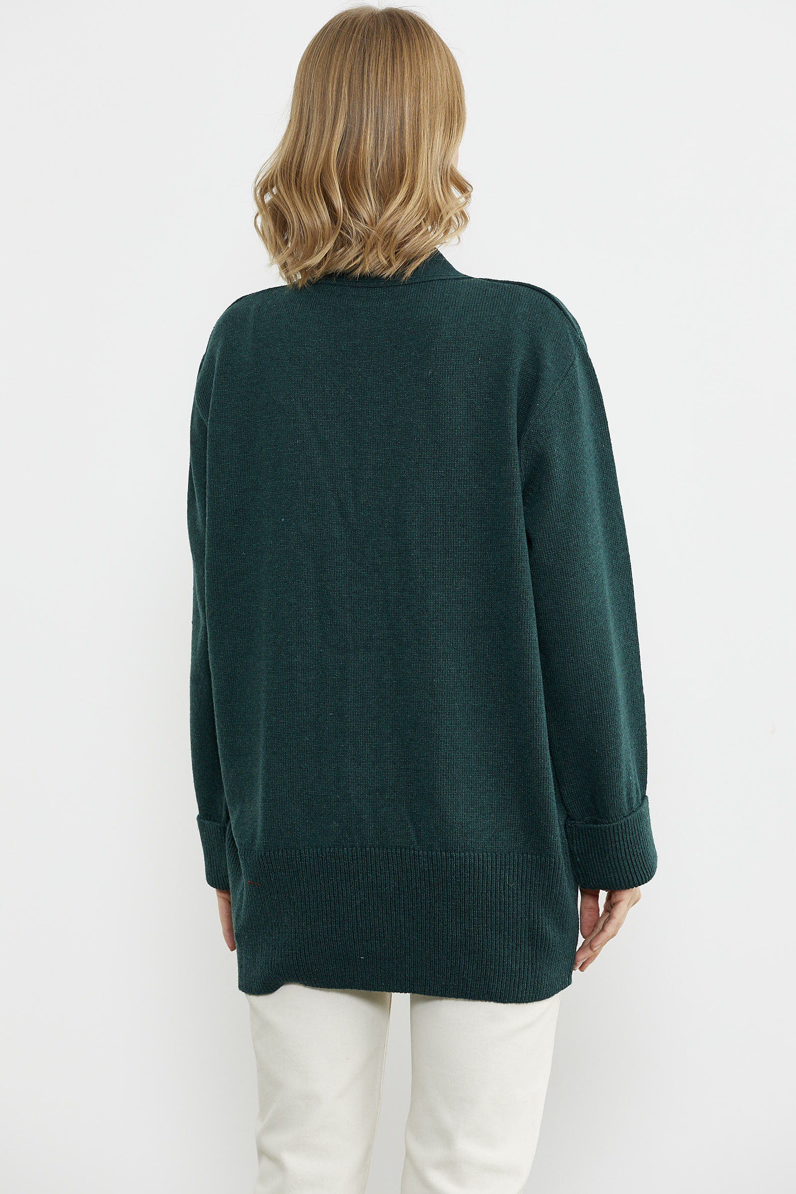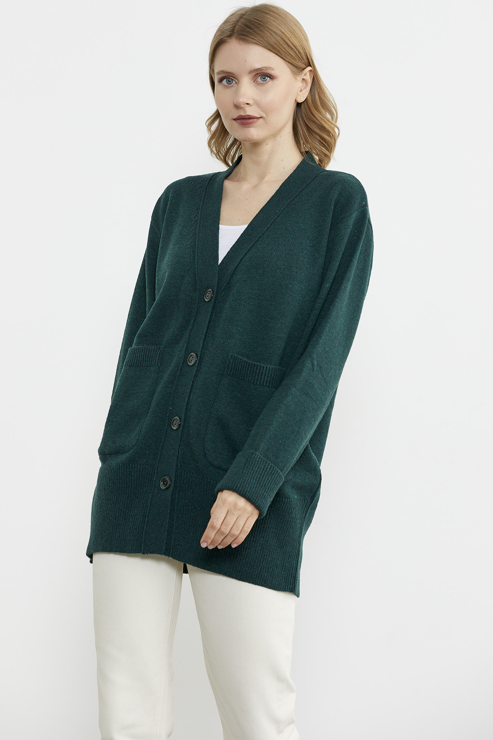 Büyük Beden Cepli Triko Hırka - Yeşil