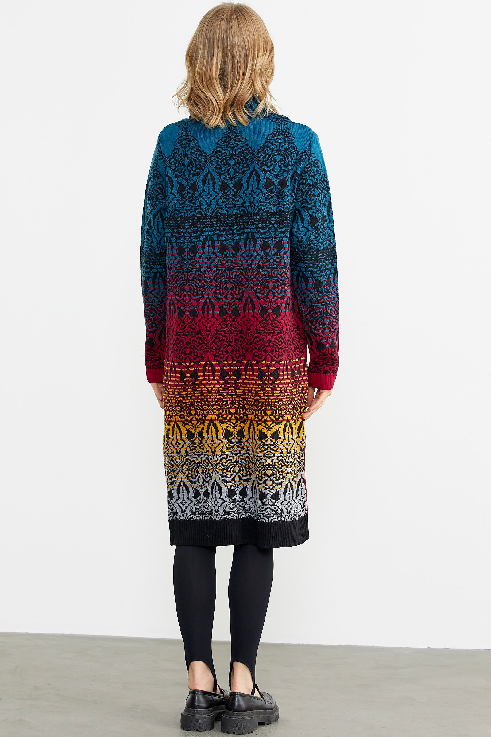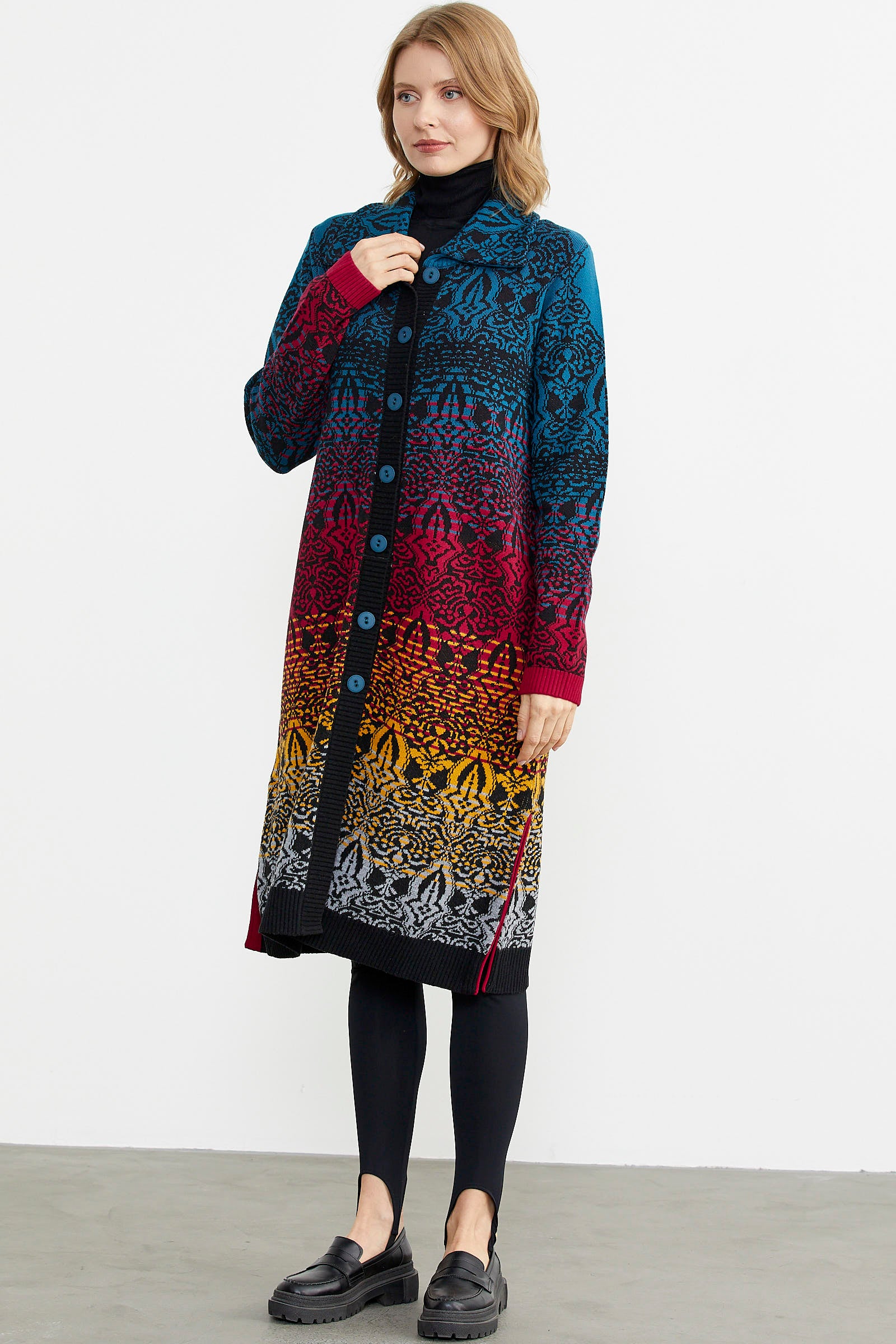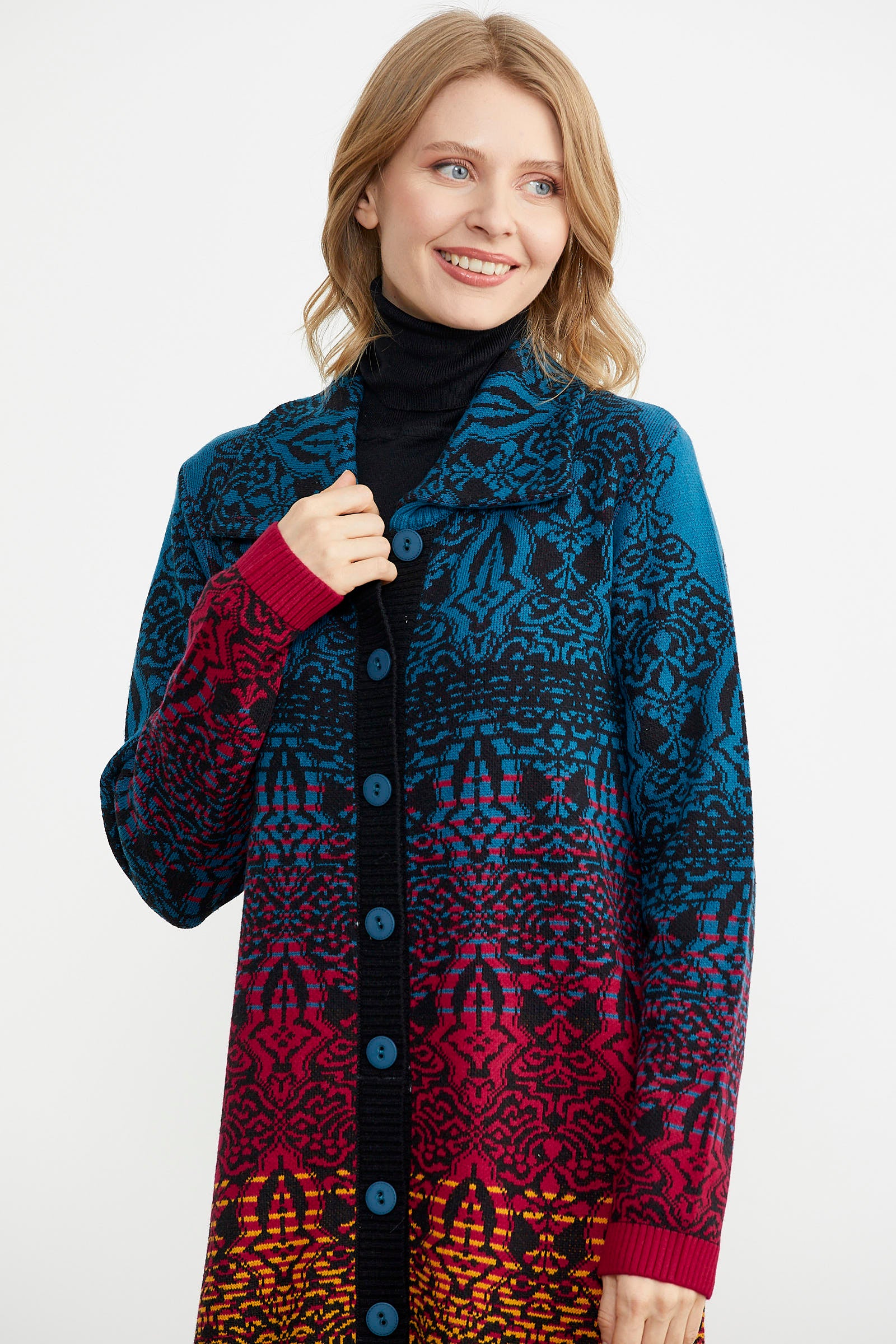 Büyük Beden Çok Renkli Uzun Triko Hırka - Siyah