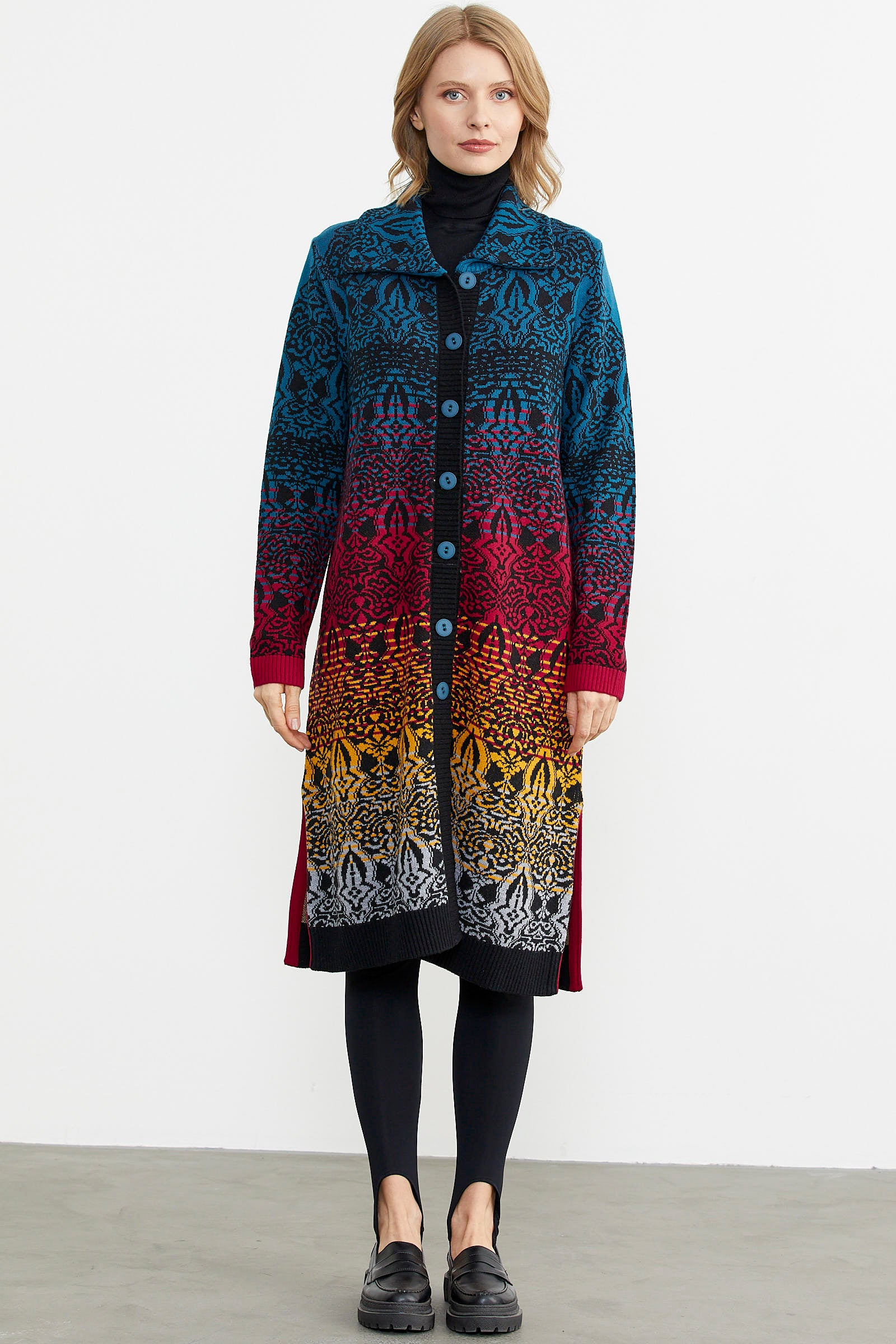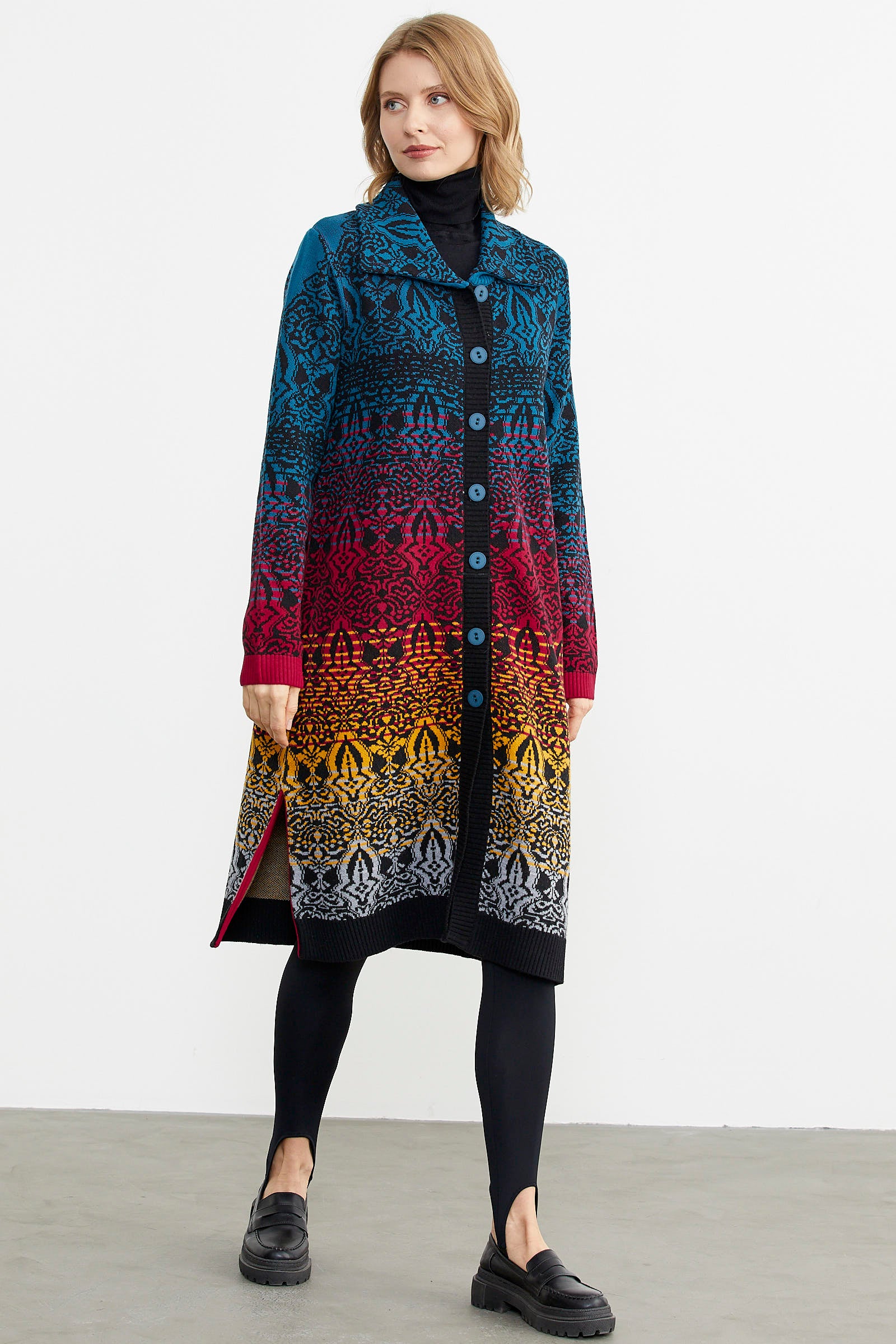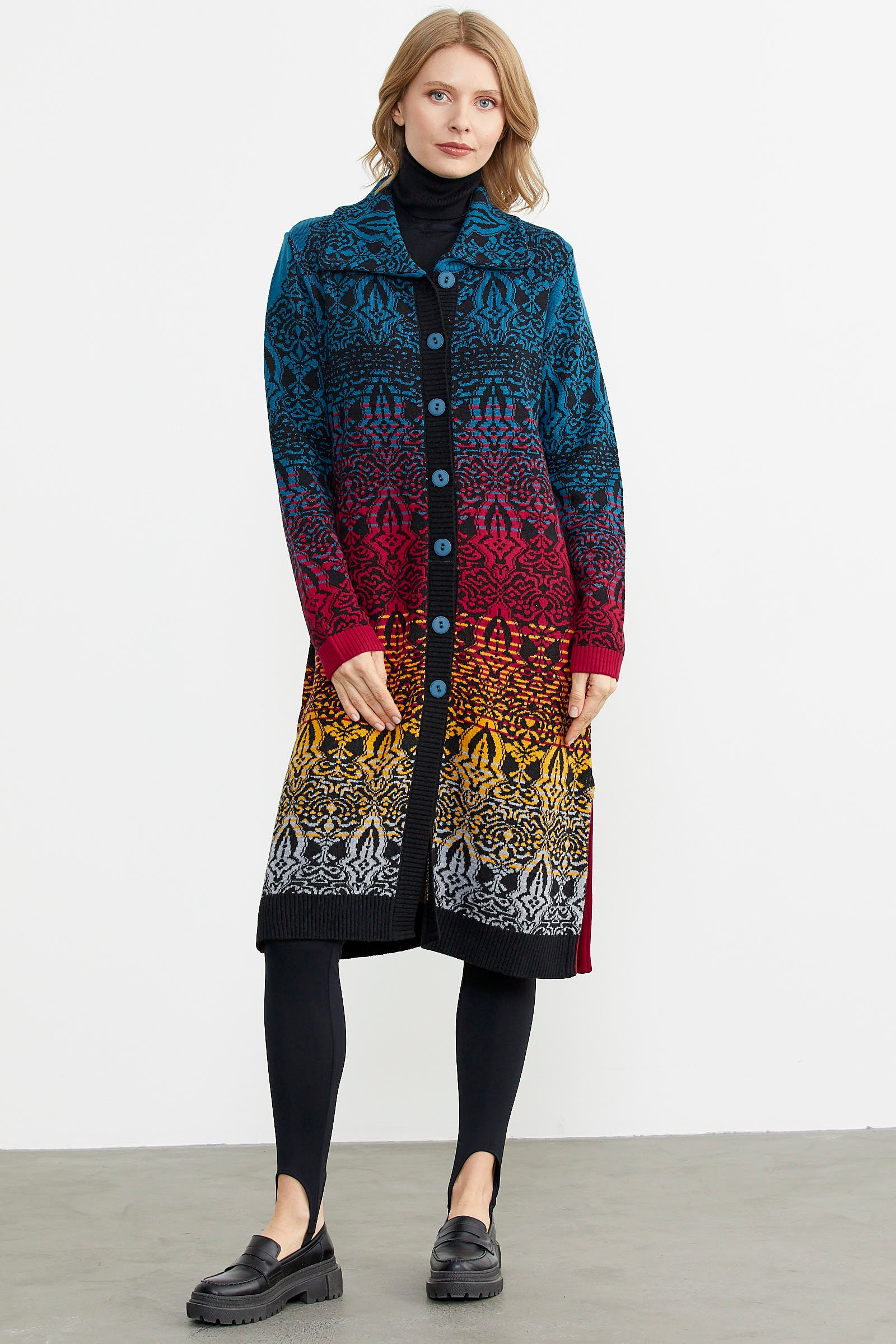 Büyük Beden Çok Renkli Uzun Triko Hırka - Siyah