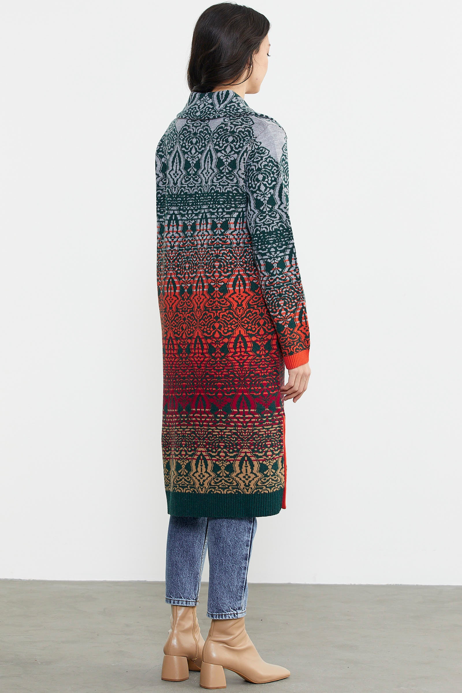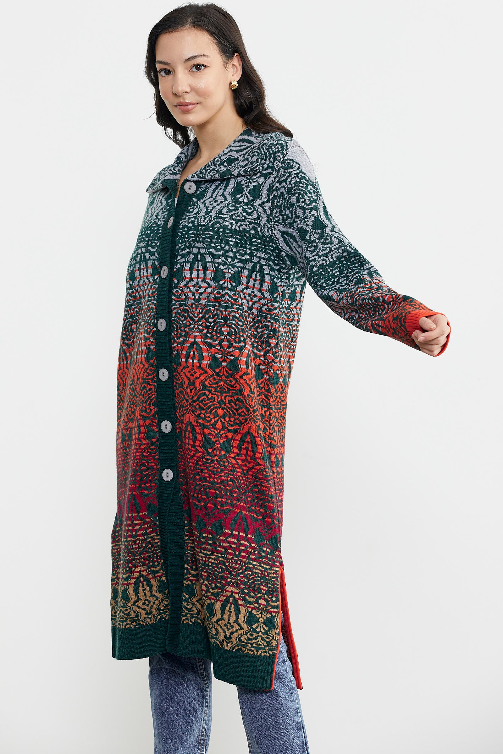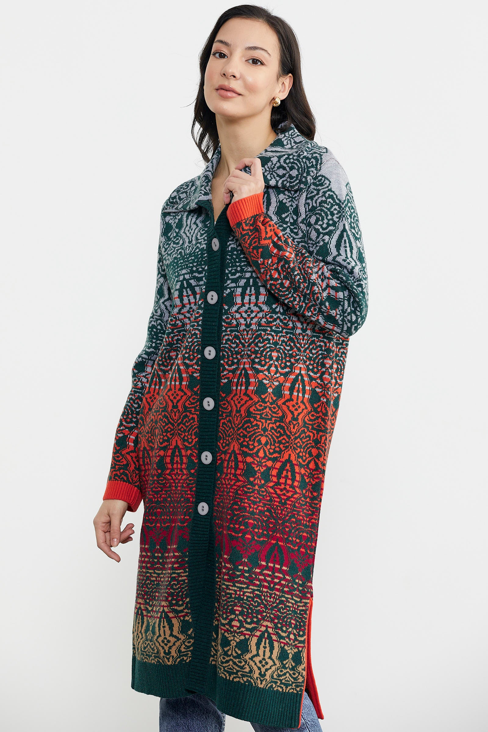 Büyük Beden Çok Renkli Uzun Triko Hırka - Yeşil