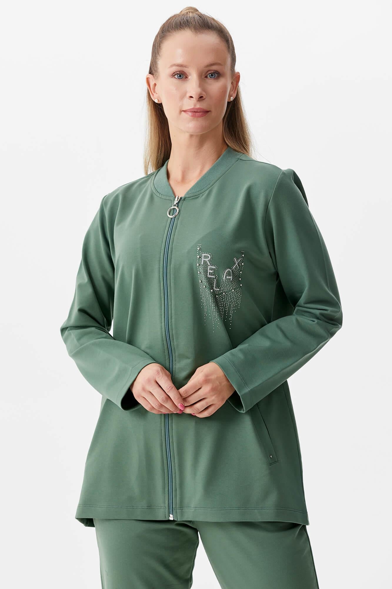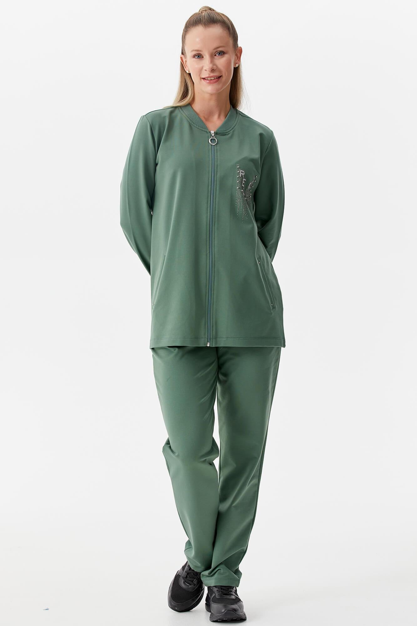 Büyük Beden Fermuarlı Eşofman Takım - Yeşil