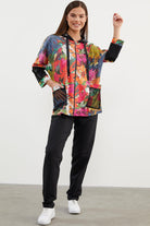 Büyük Beden Renkli Çiçek Desenli Takım - Oranj