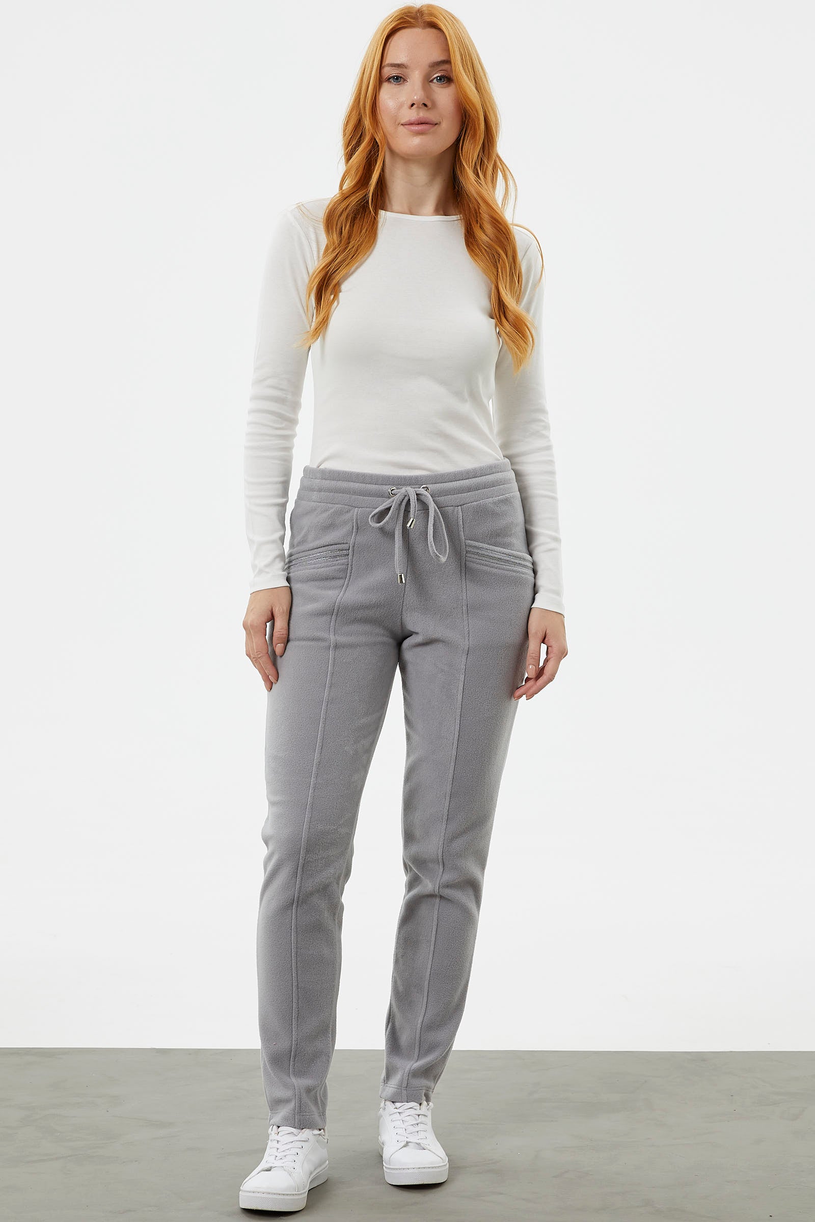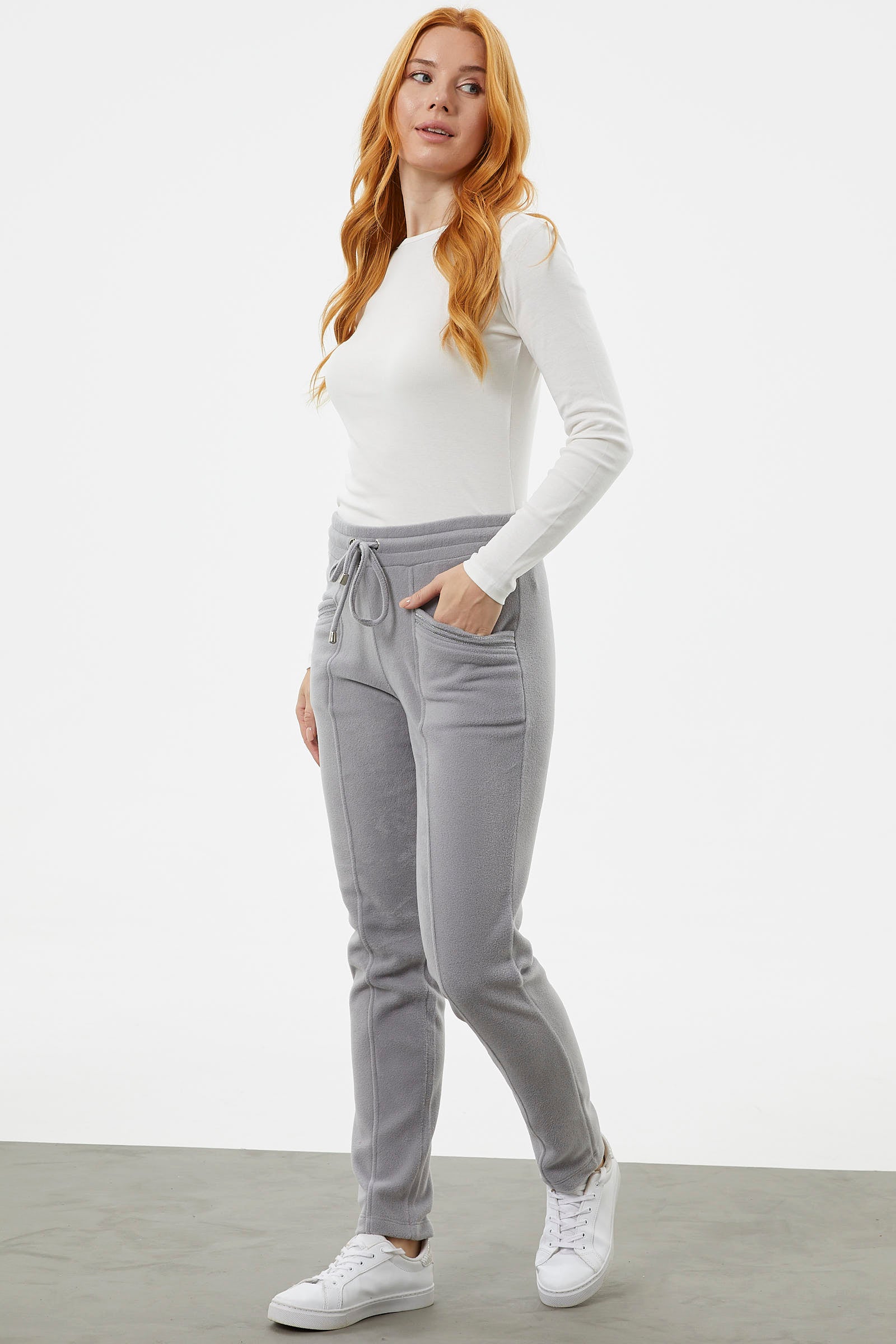 Soğuk günlerin en çok tercih edilen polar kumaşından tasarlanan dar paça, normal bel yüklekliğine sahip, ayarlanabilir kordonlu tek alt modeli ön kısımda bulunan sim detaylı cepleri ile farklılık oluşturuyor.