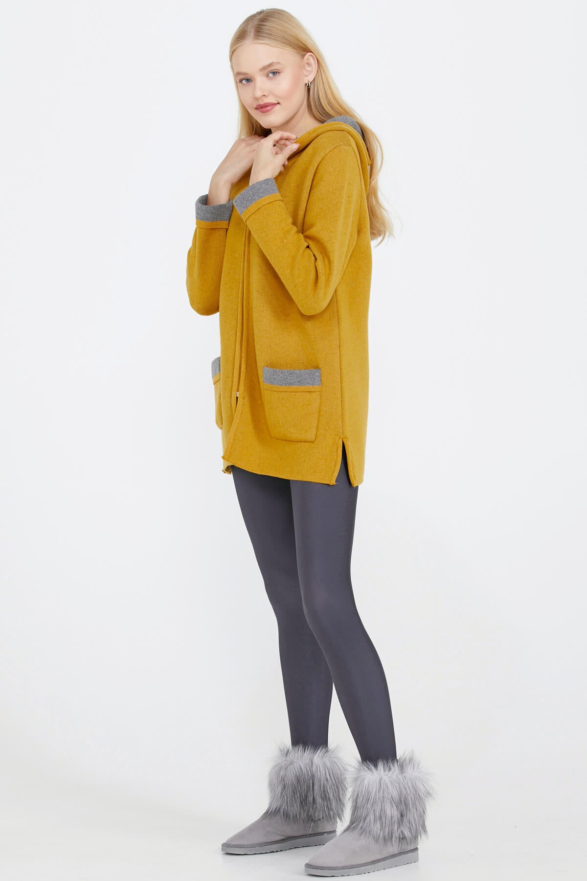 Cepli ve Kapüşonlu Kadın Triko Ceket - Güneş - Gri