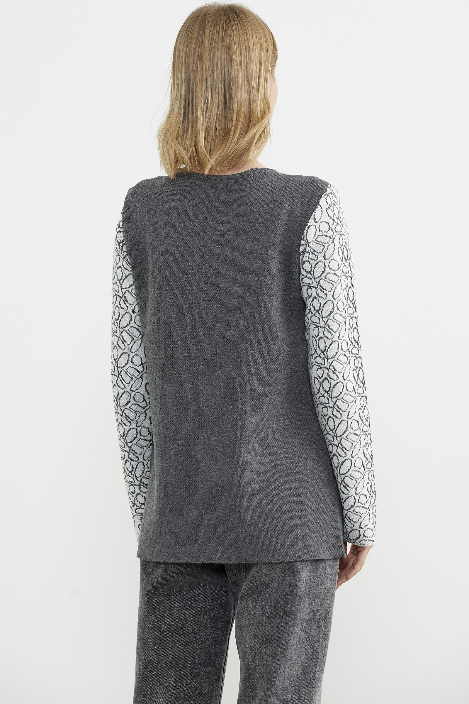 Çiçek Desenli Arkası Uzun Triko Kazak - Koyu Gri