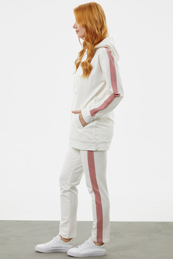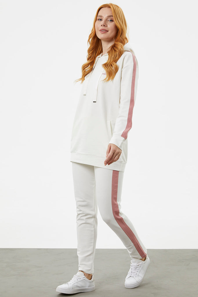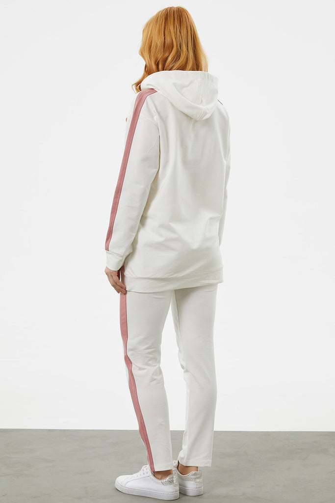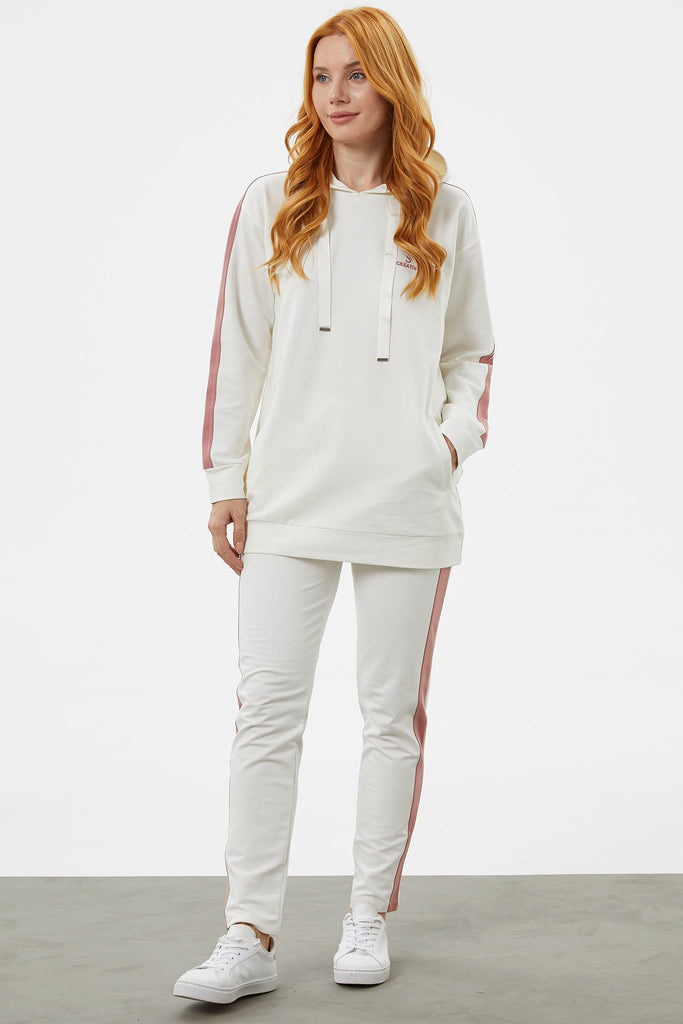 Çift Renk Kapüşonlu Eşofman Takım - Ekru