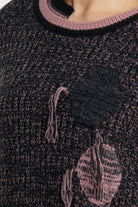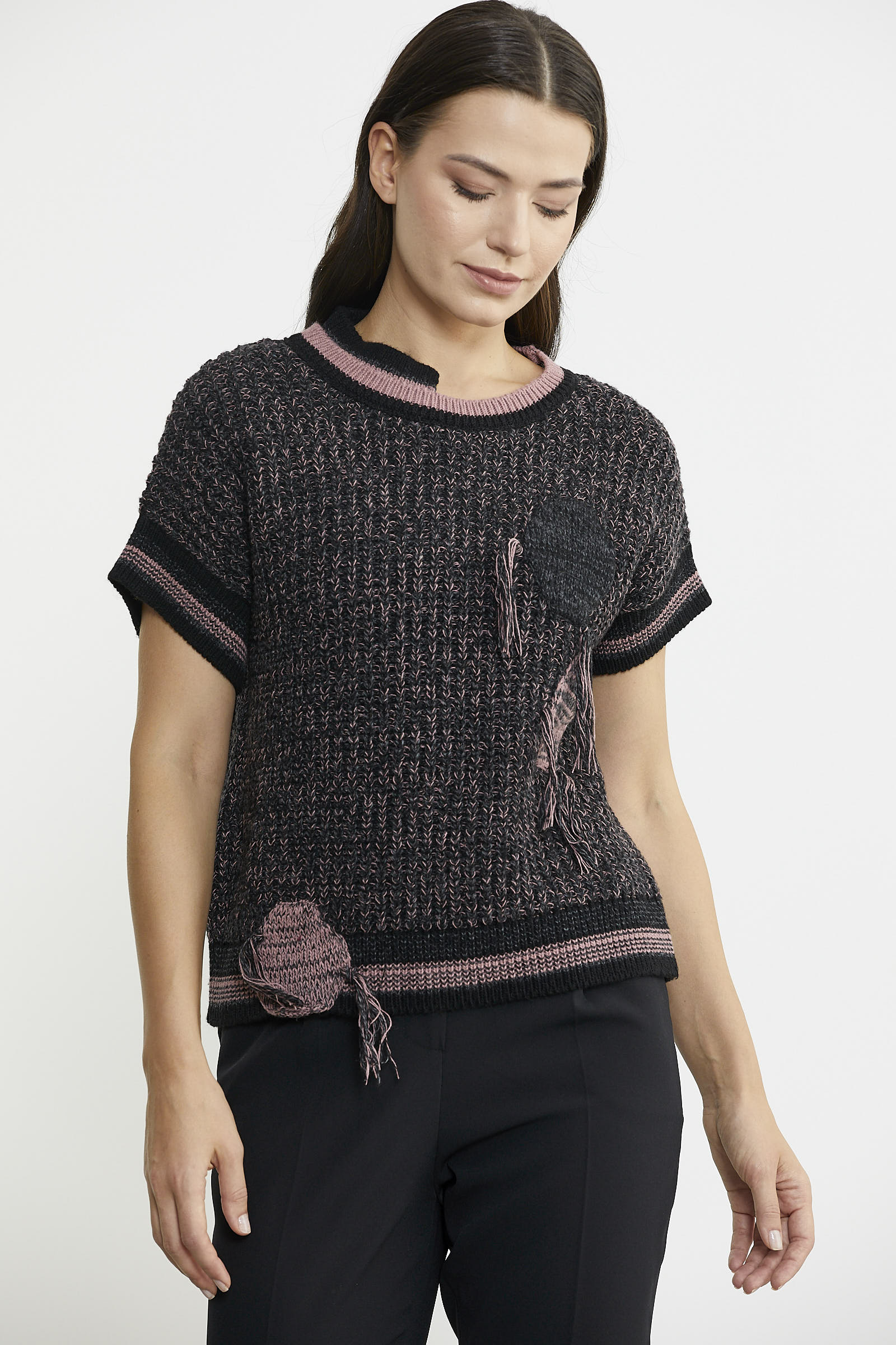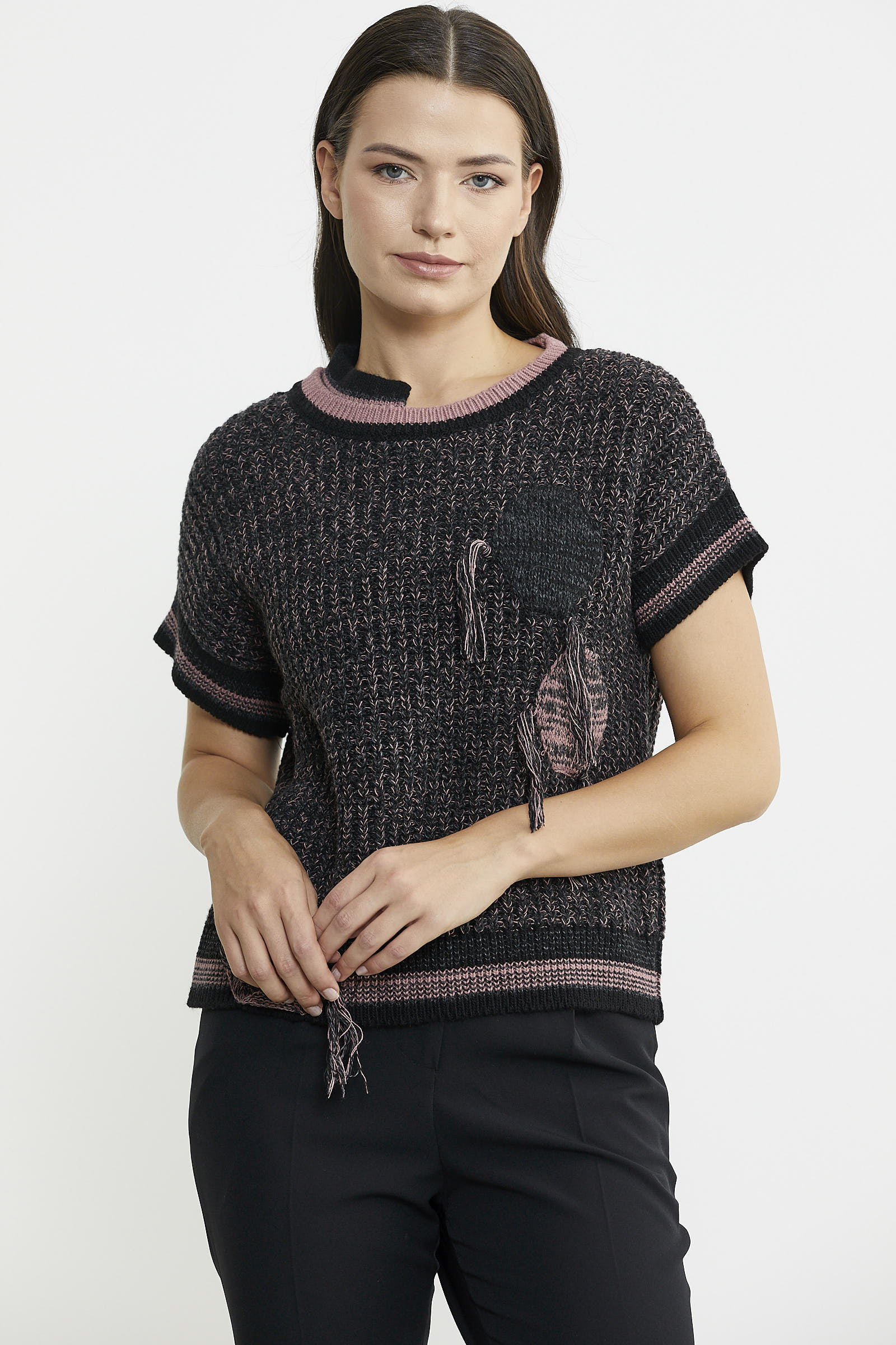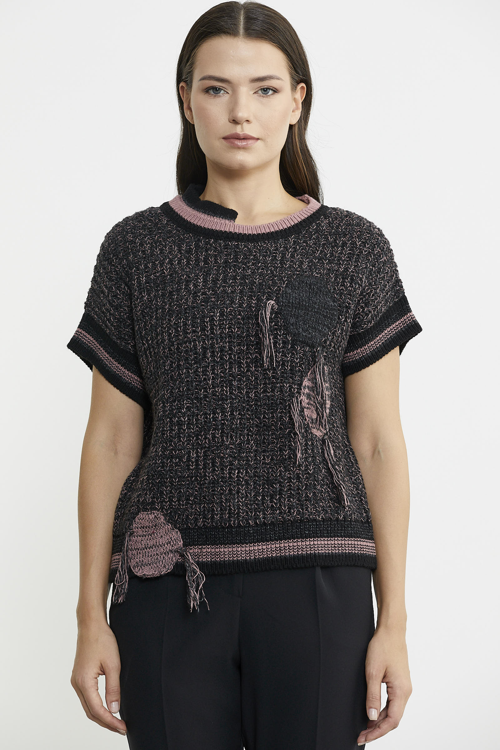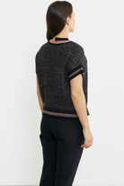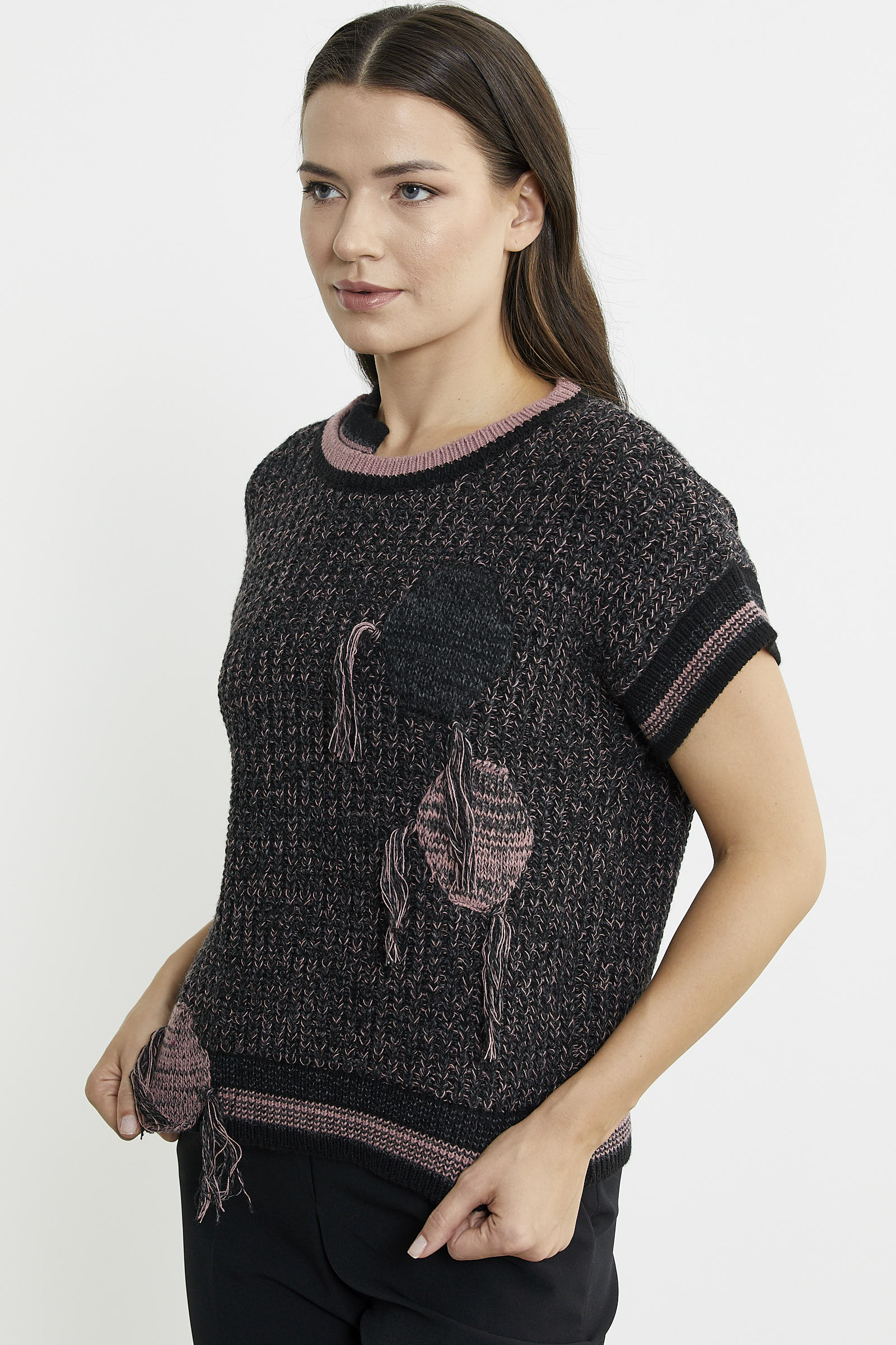 Çift Renk Kısa Kol Yün Triko Kazak - Siyah