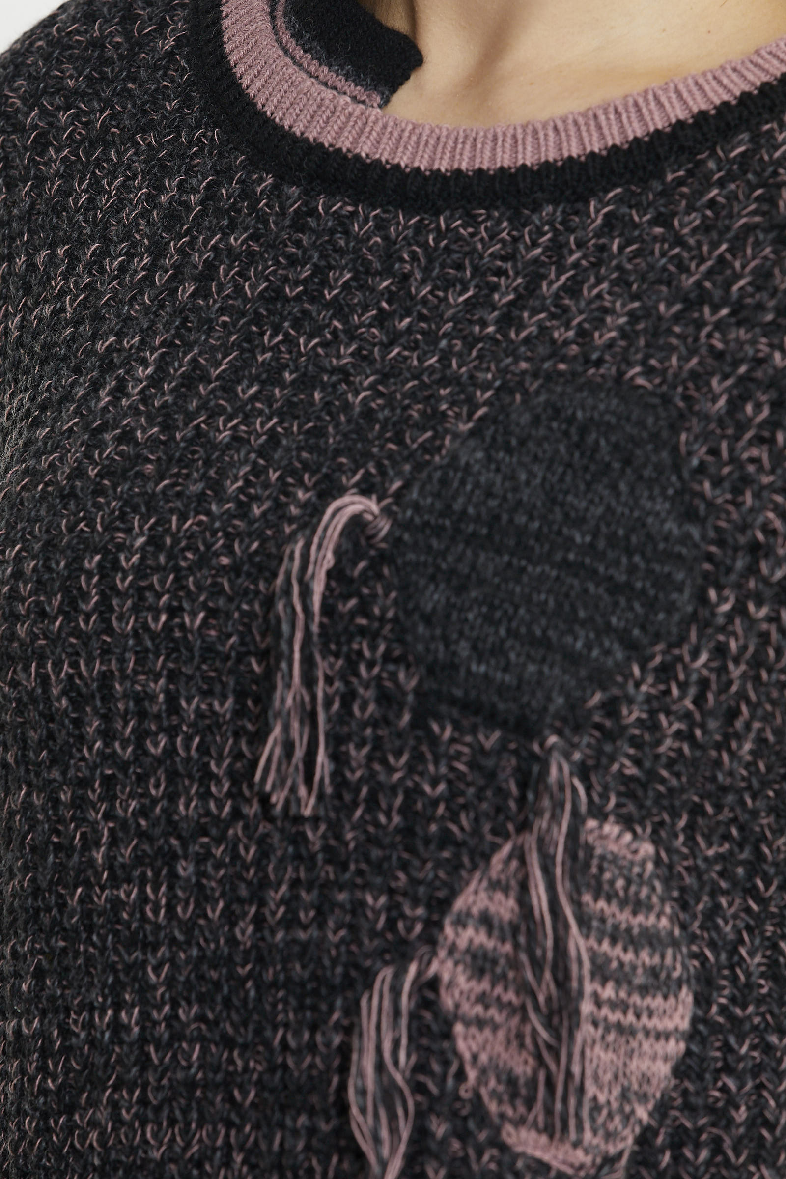 Yaka detayıyla öne çıkan kırçıllı triko kazak, kısa kol olarak tasarlanmıştır. Yüksek oranda yün içerir.