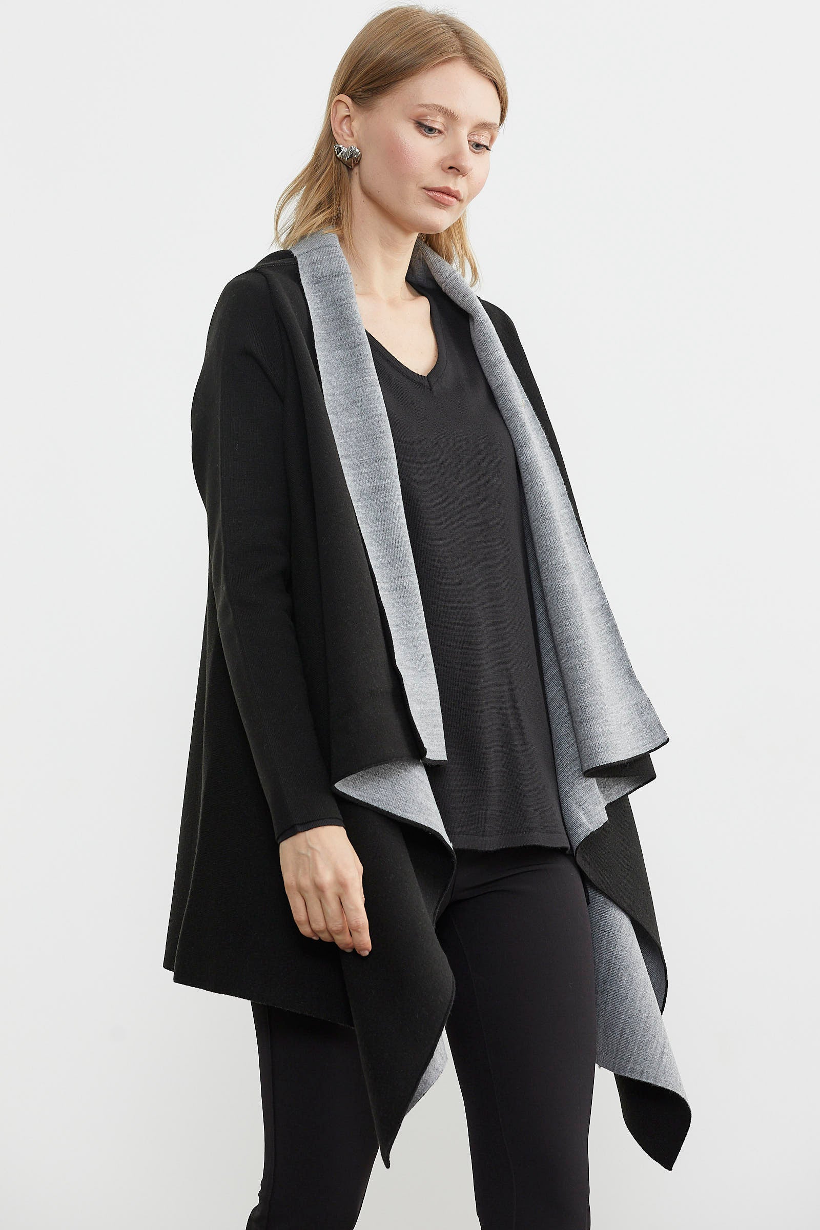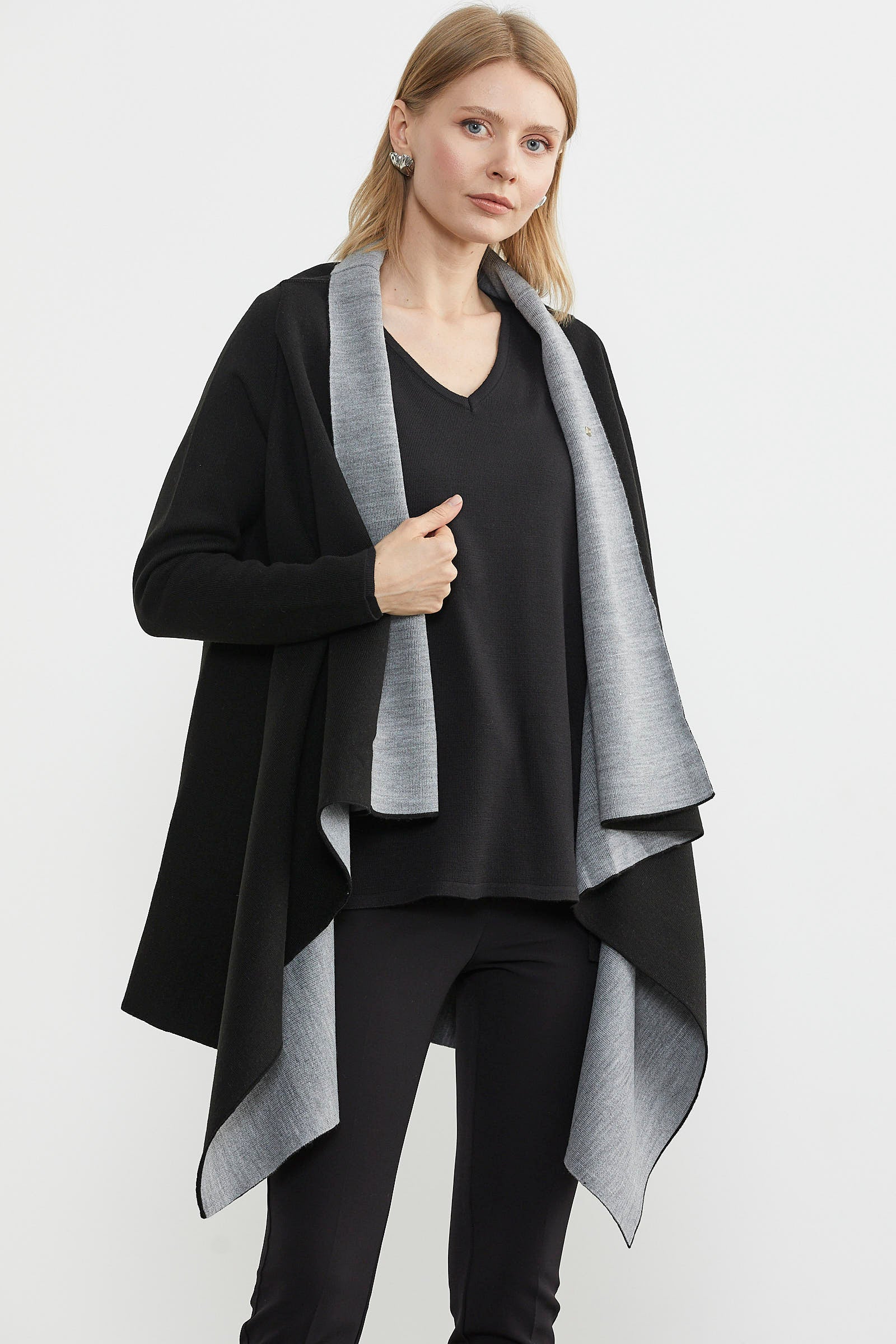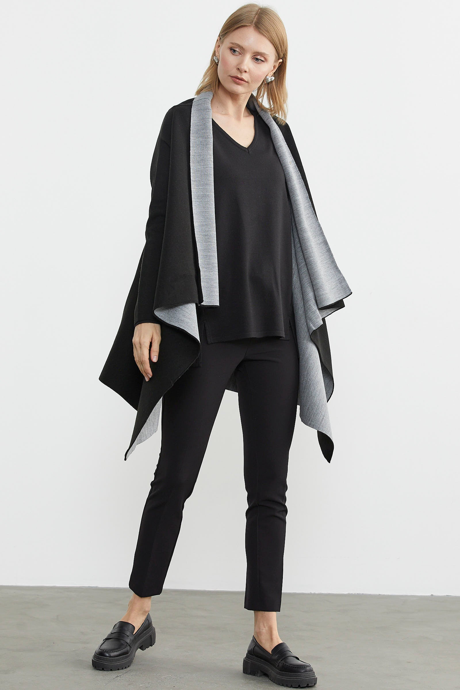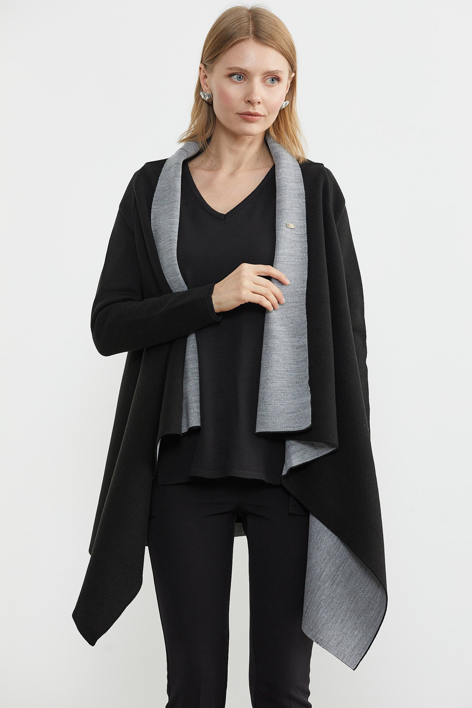 Çift Renk Uzun Triko Panço - Siyah - Gri