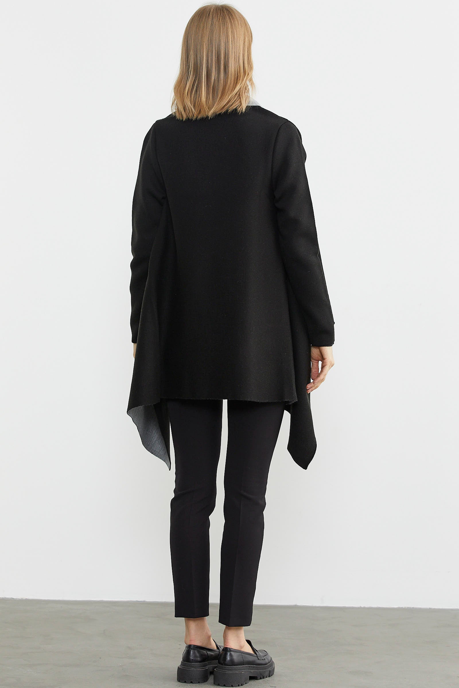 Şal yakası ile canlılığa sahip uzun kollu çift renkli asimetrik kesime sahip uzun panço ile kullanım kolaylığına sahip olurken dikkatleri üzerinize çekeceksiniz.