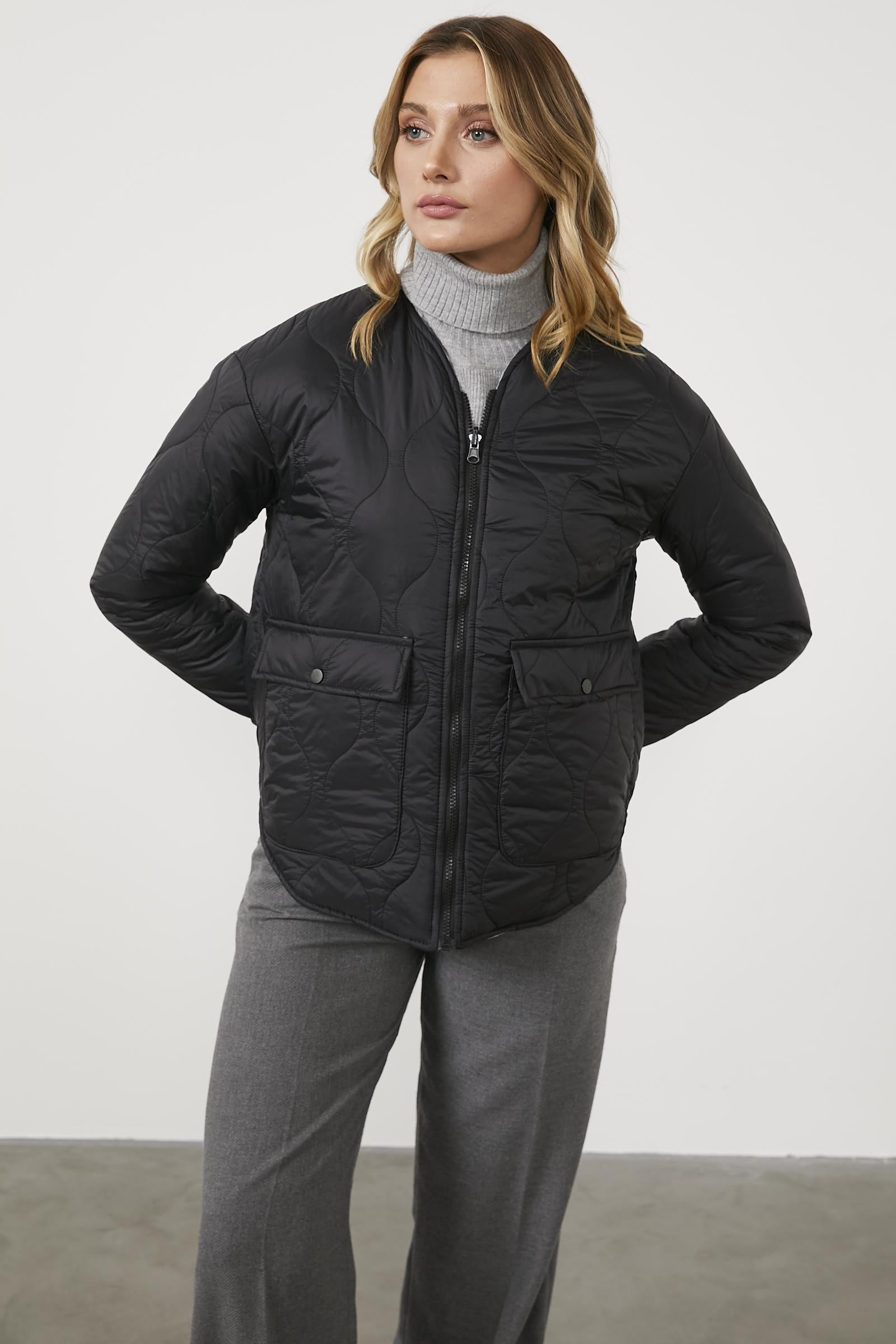 Çift Taraflı Giyilebilen Kapitone Mont - Siyah