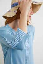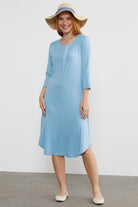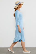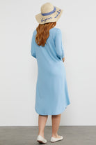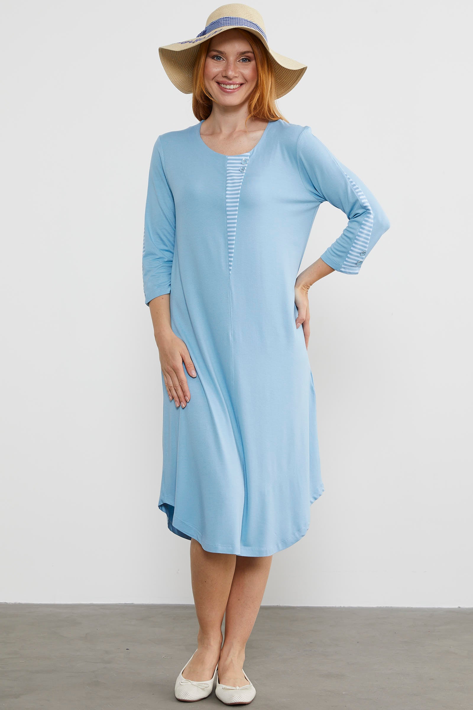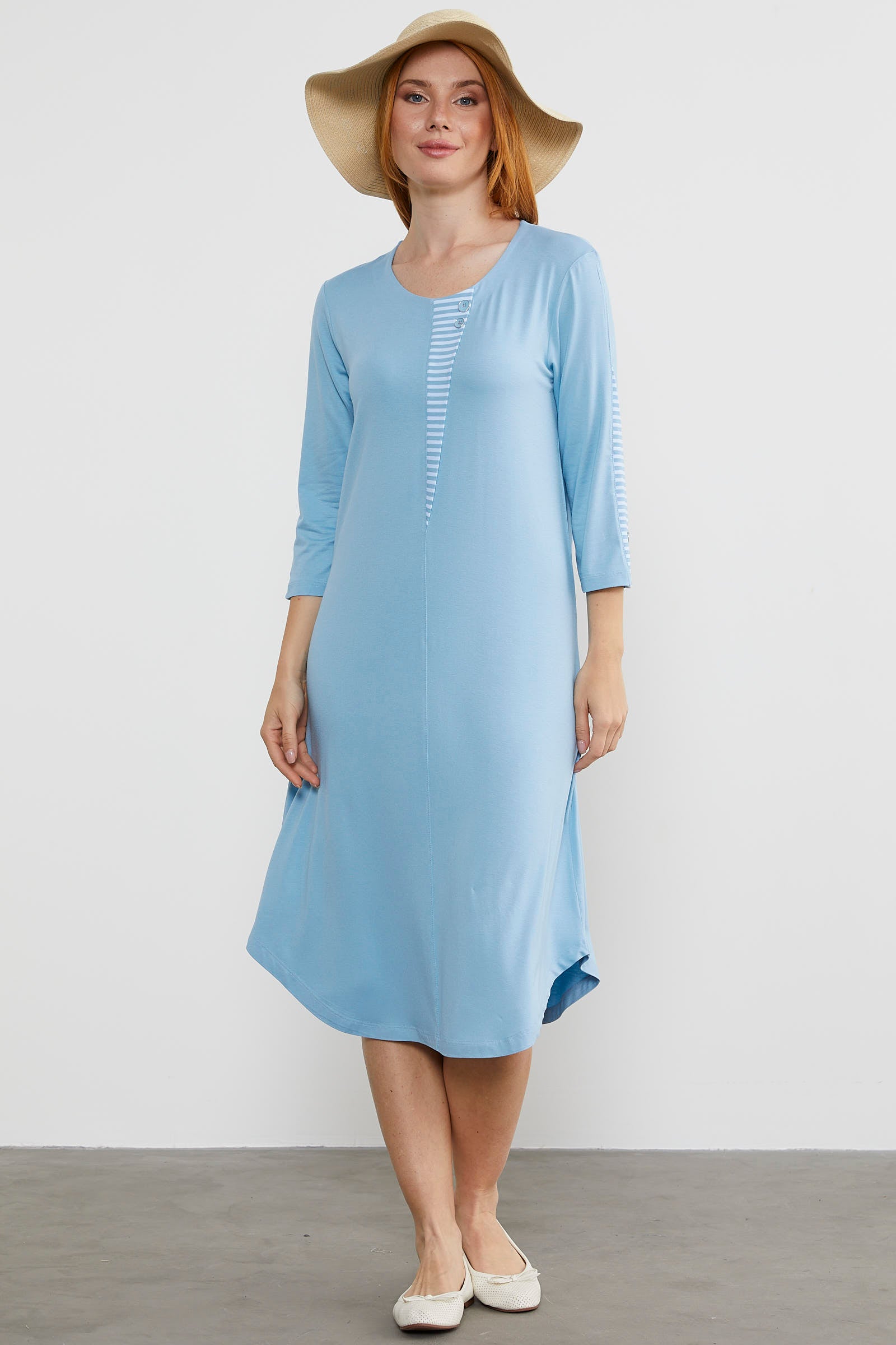 Çizgi Detaylı Dökümlü Penye Elbise - Mavi
