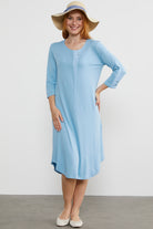 Viskon kumaşlı, çizgili kol ve göğüs detaylı, dökümlü, rahat, midi boy penye elbise ile kullanışlı tek parça konforu oluşturabilirsiniz.