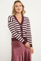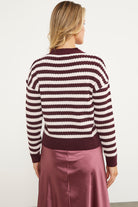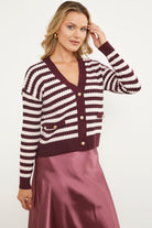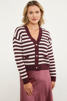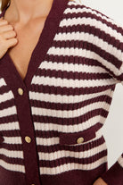 Çizgili Cep Detaylı Triko Hırka - Bordo