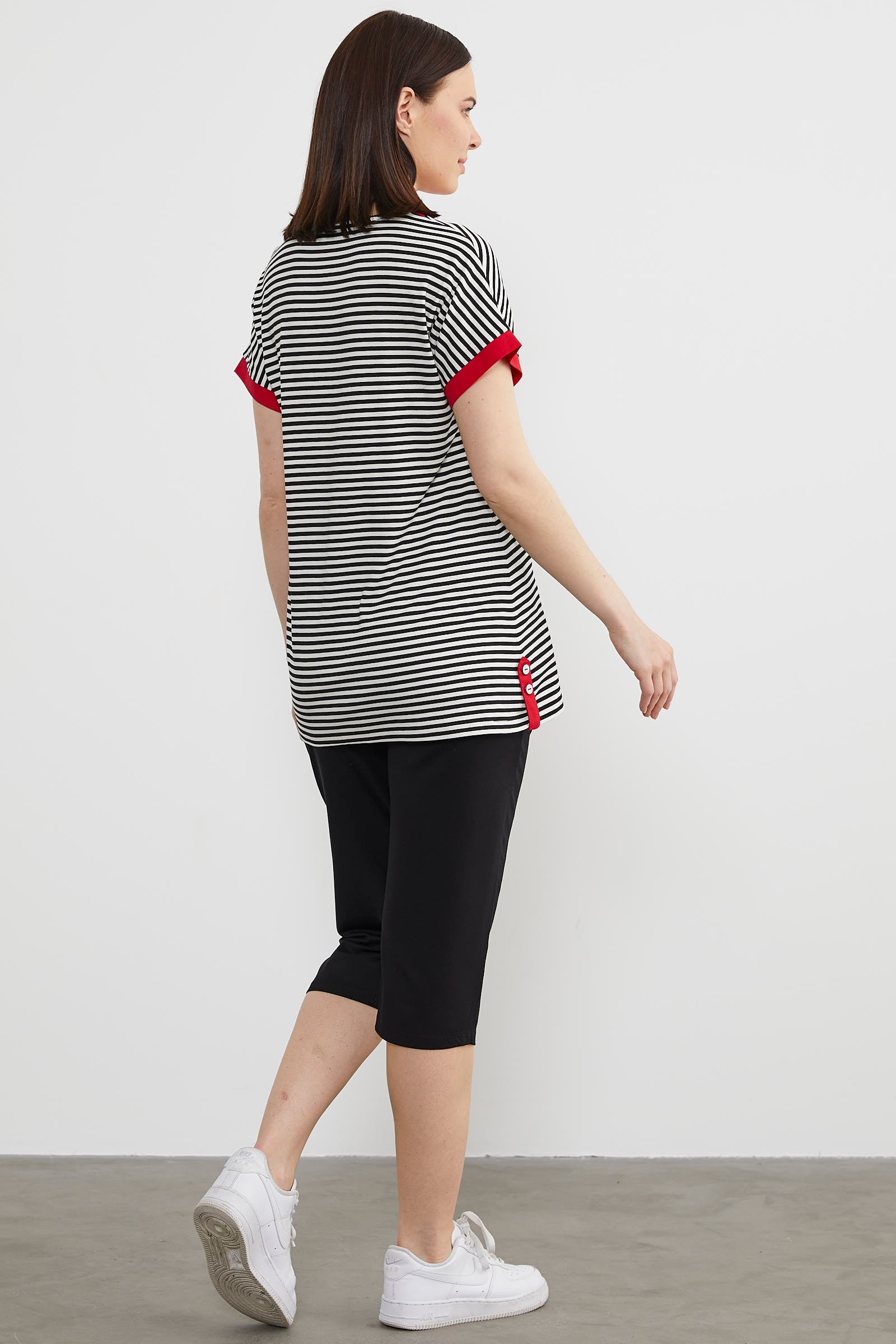 Çizgili Marine Renk Kombinli Kapri Takım - Siyah