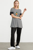 Baskı detaylı çizgili penye takım geniş kalıp, tunik boy olarak üretilmiştir. Spor kombin kolaylığı sağlar.