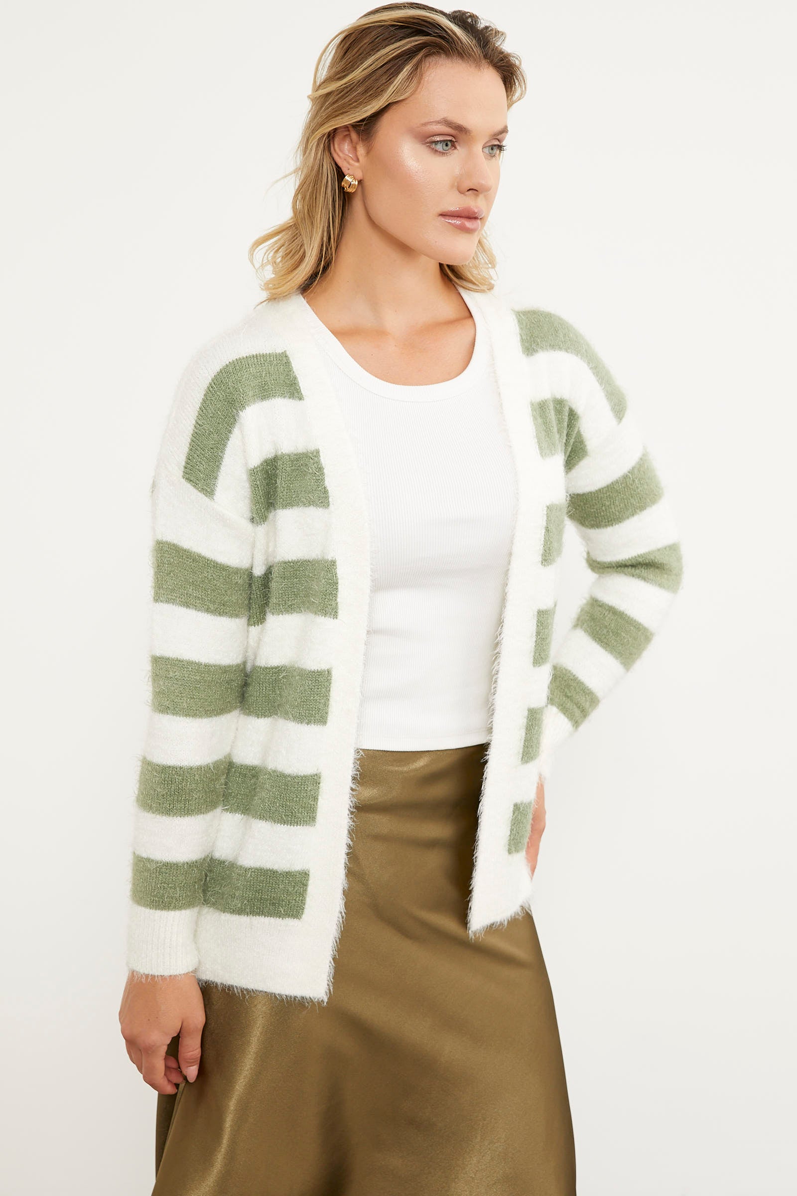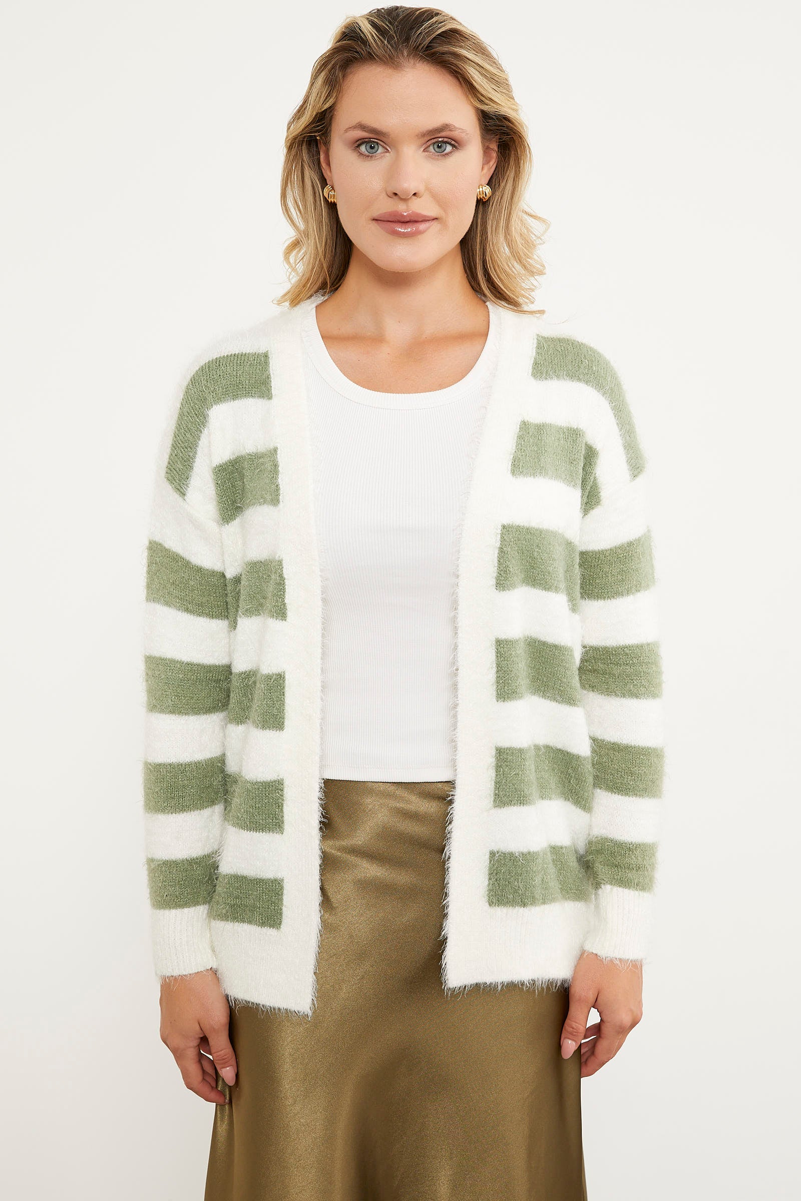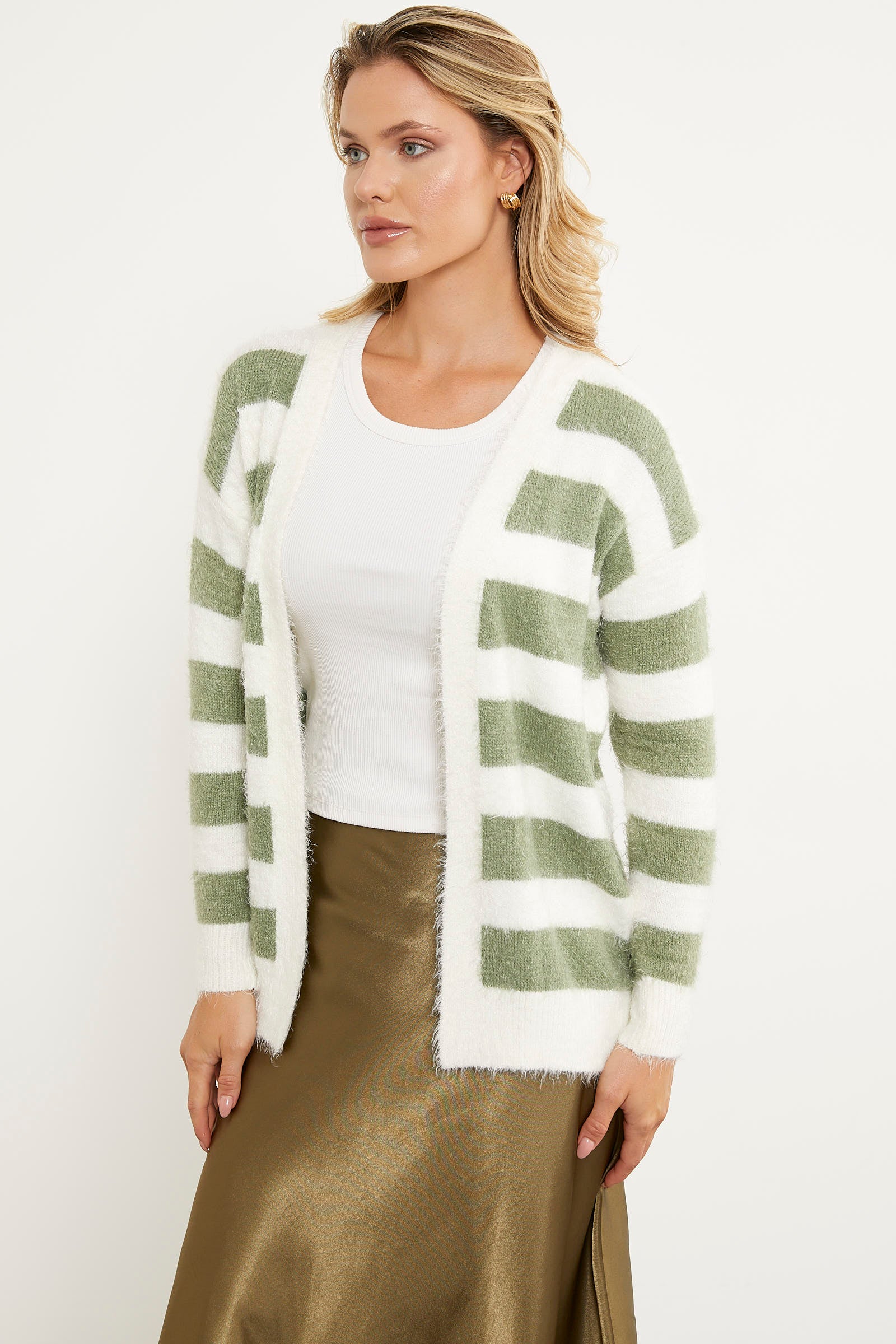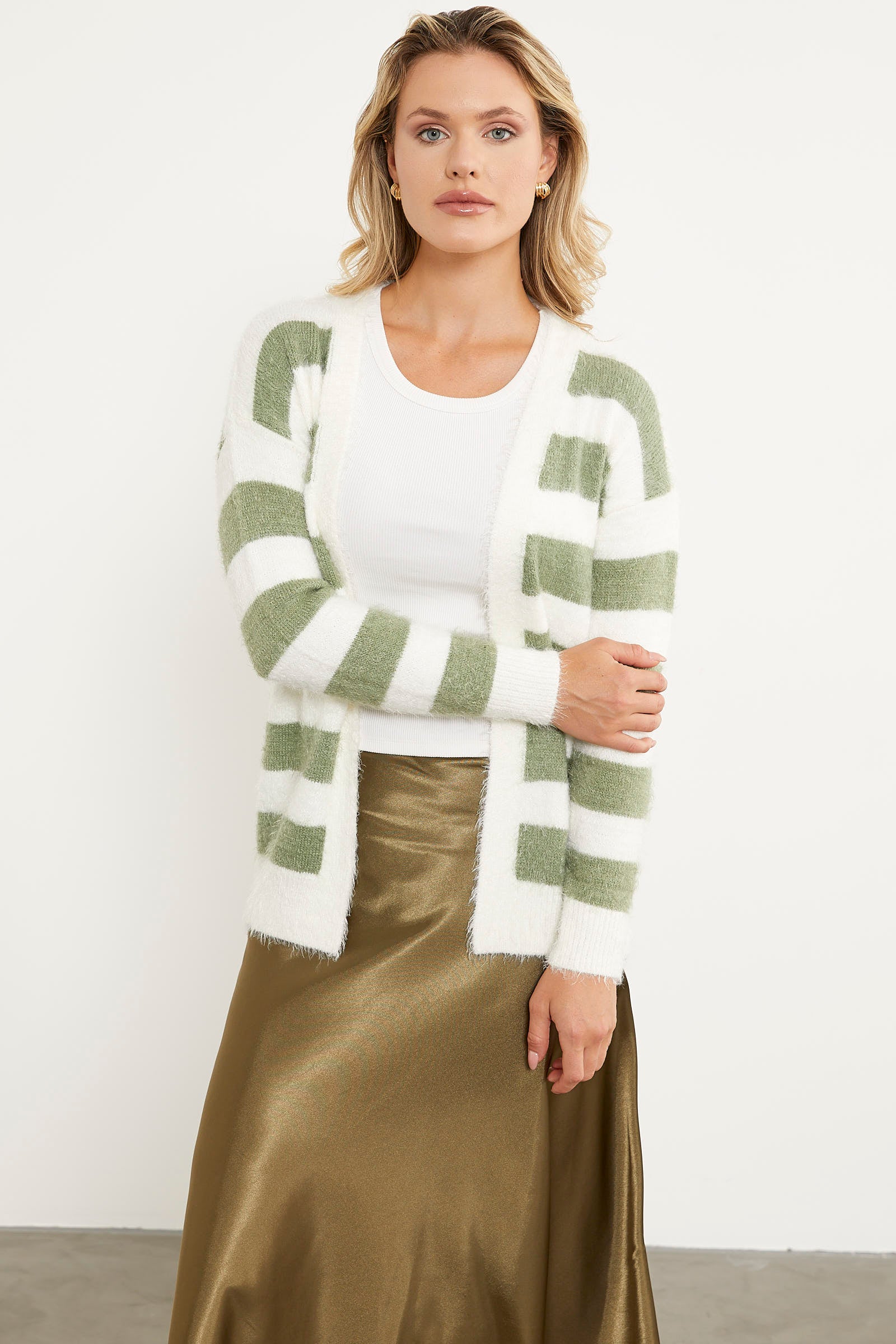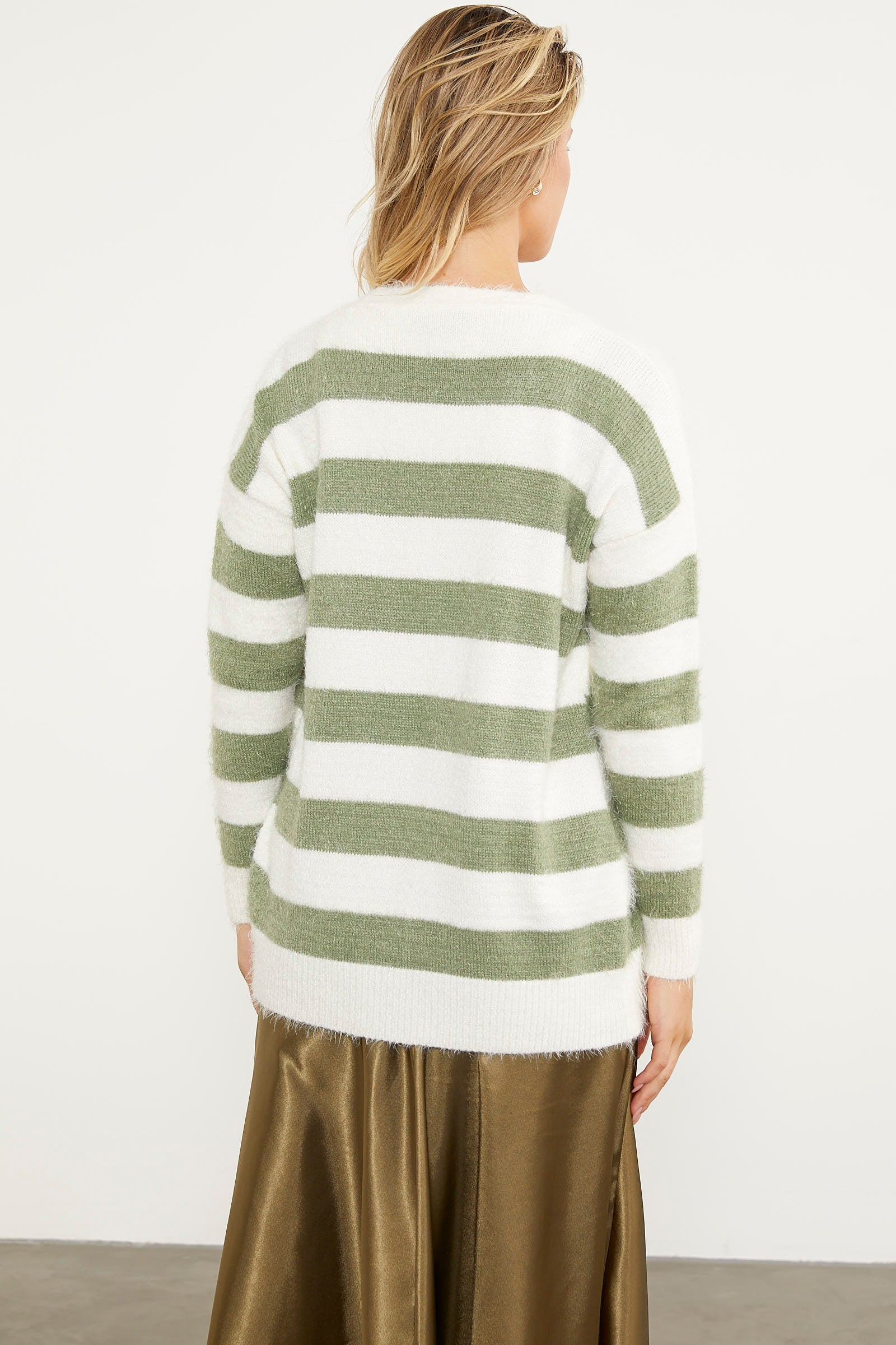 Çizgili Renk Geçişli Triko Hırka - Çağla Yeşili