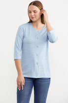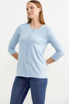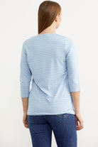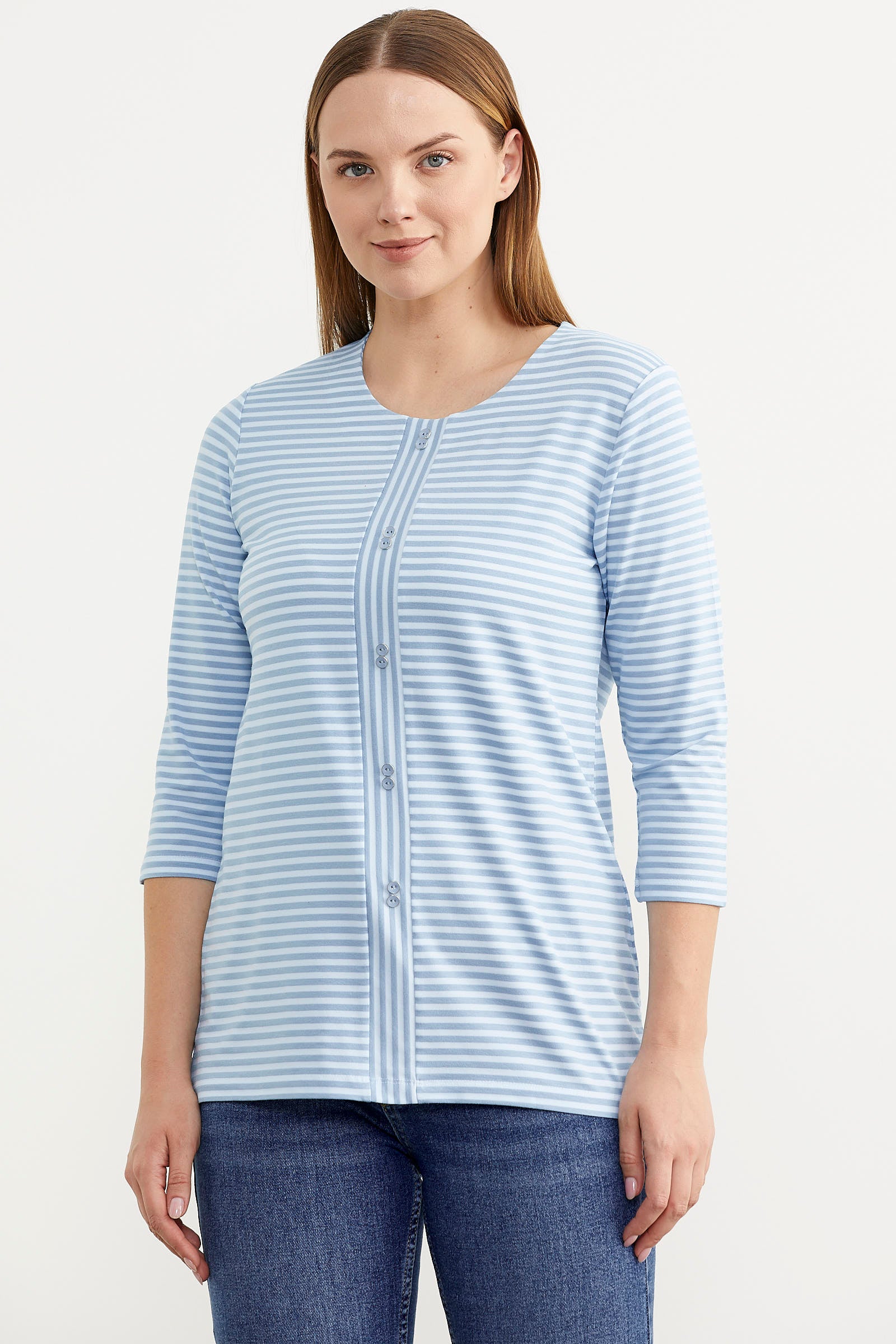 Çizgili Uzun Kol Patlı Tişört - Mavi