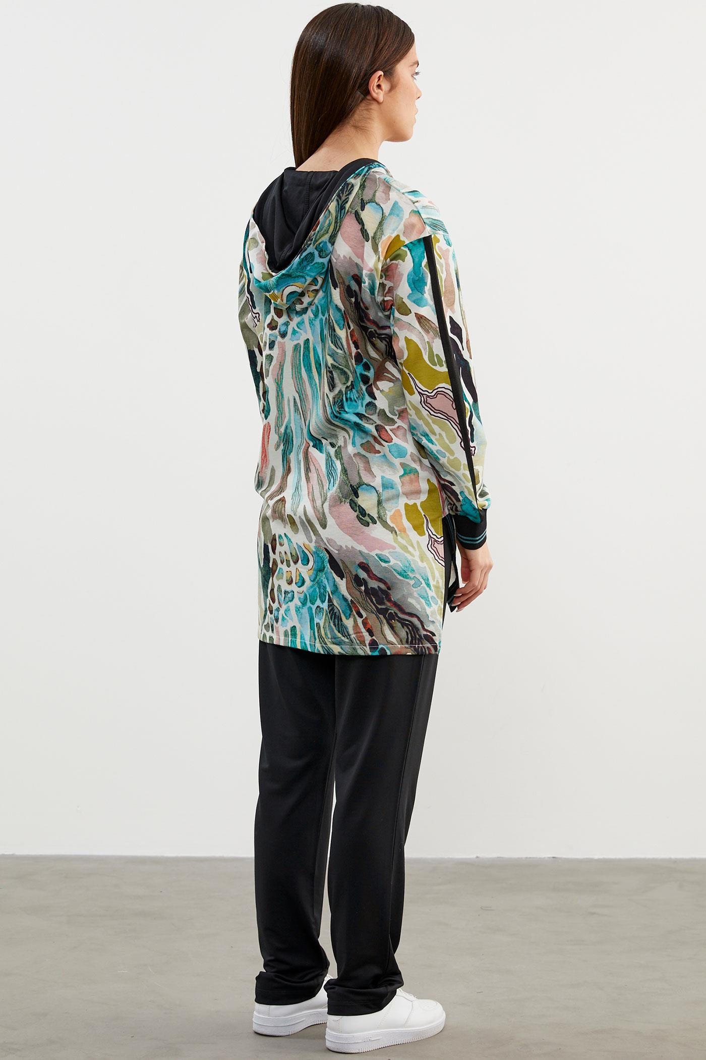 Renkli formuyla ön plana çıkan, fermuar kapamasıyla pratik kullanım sağlayan üst ve boru paça basic alttan oluşan takım.
