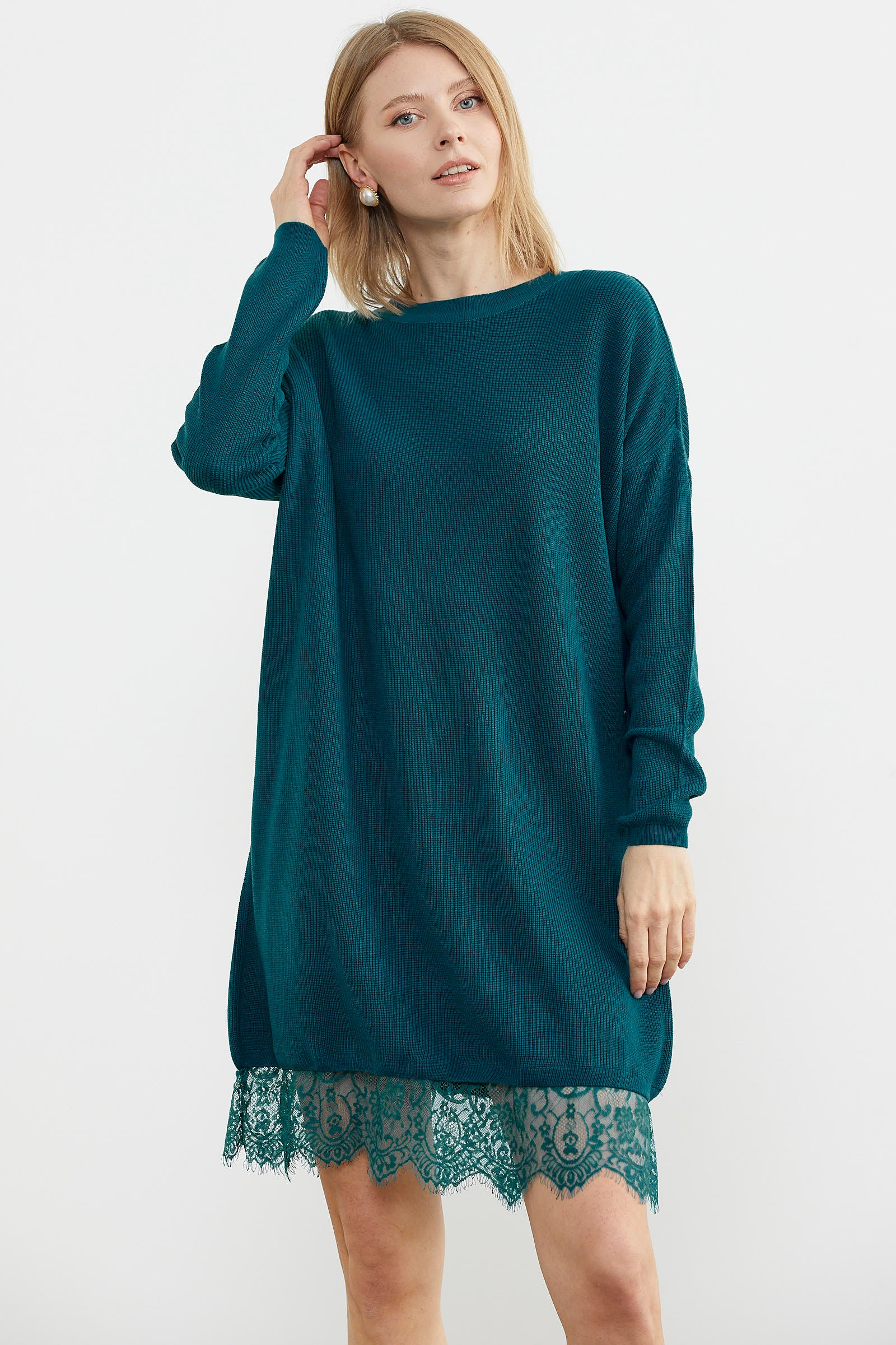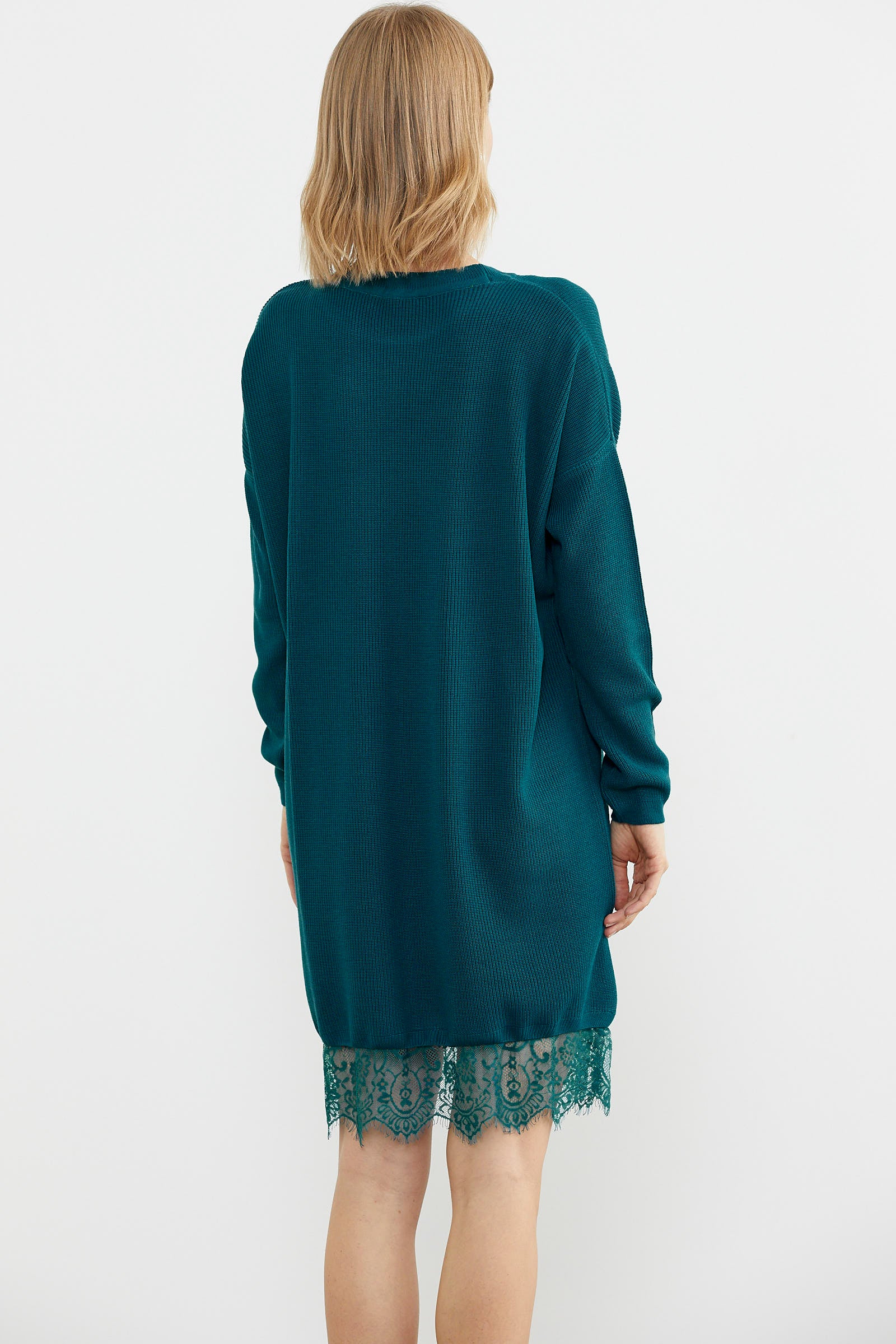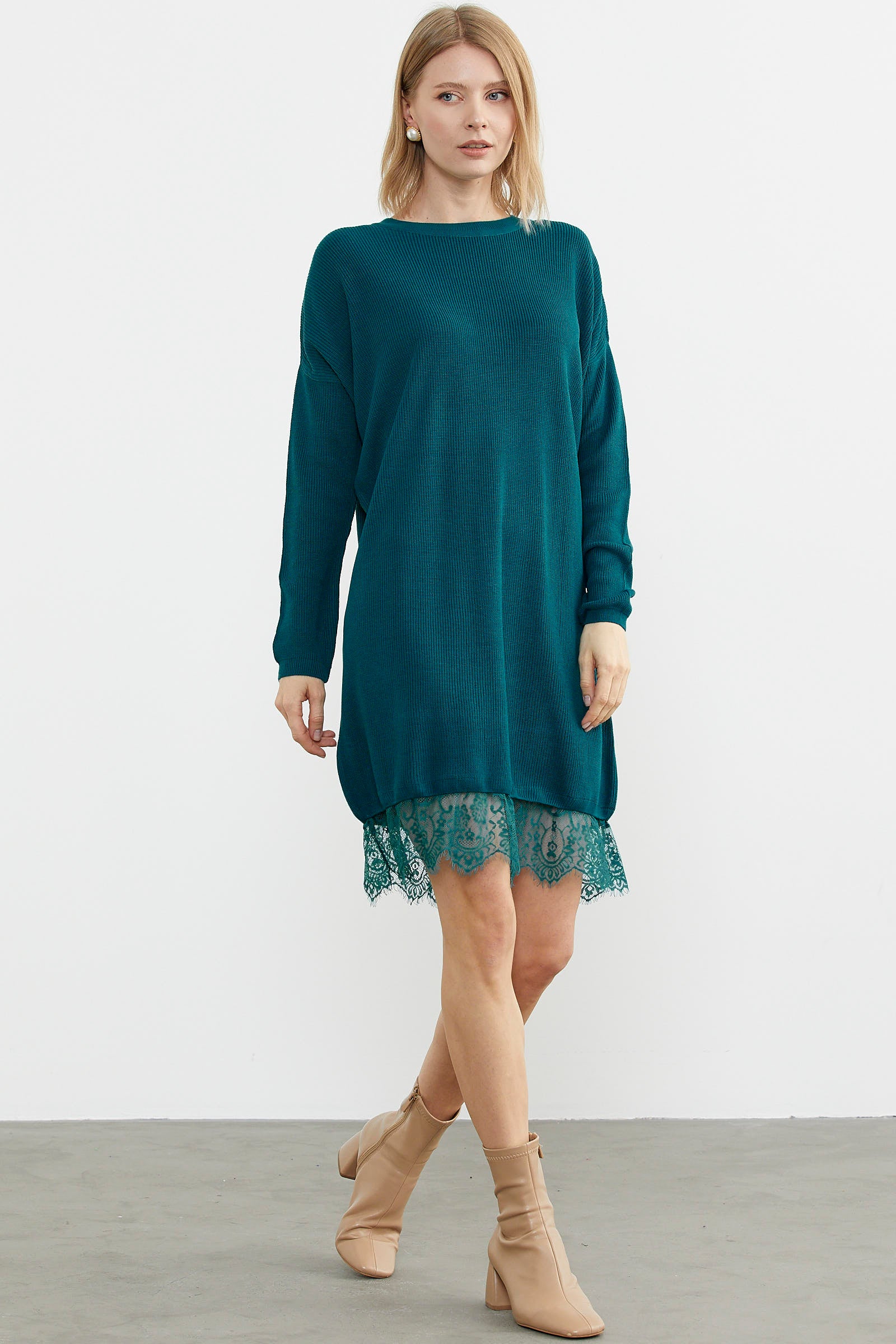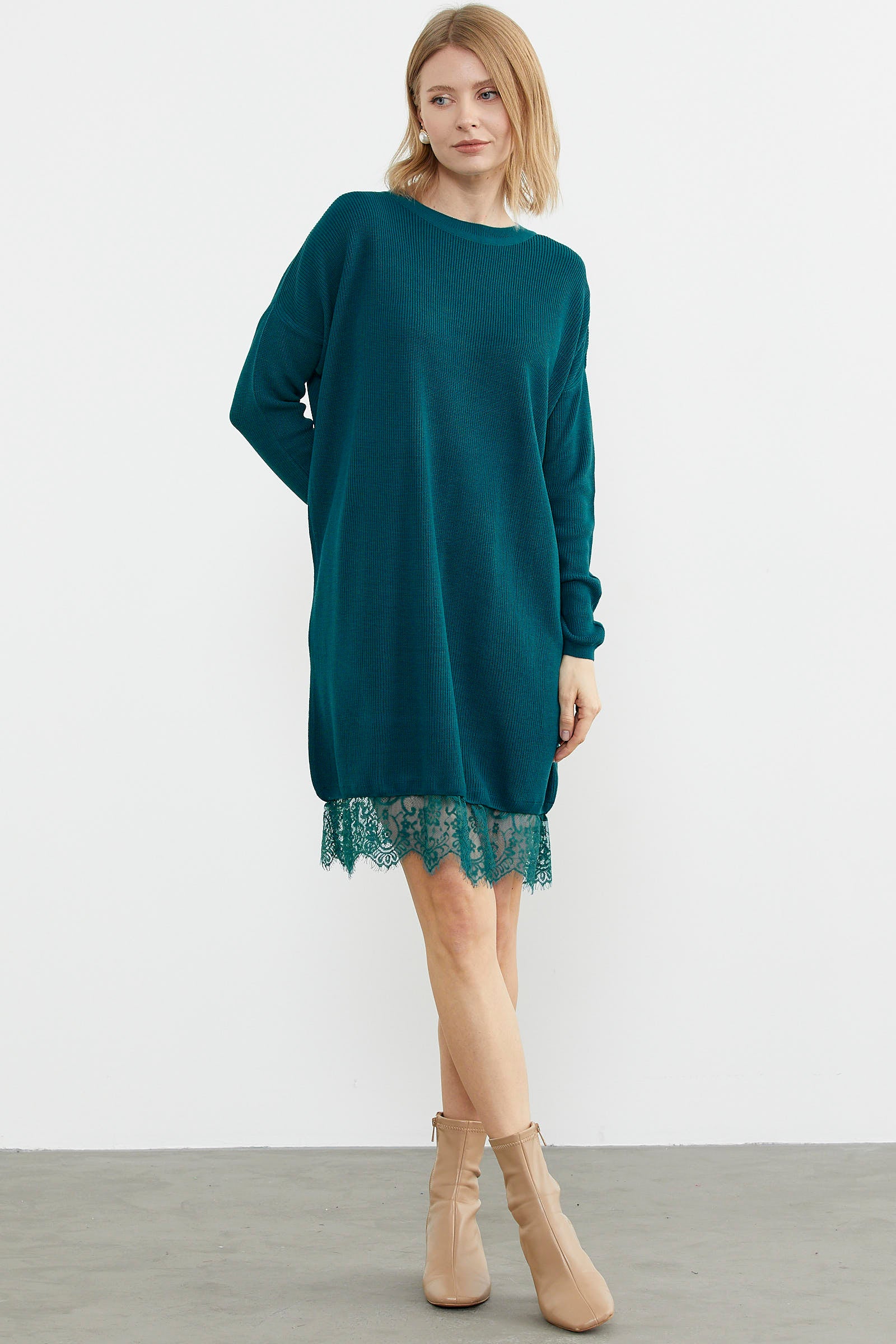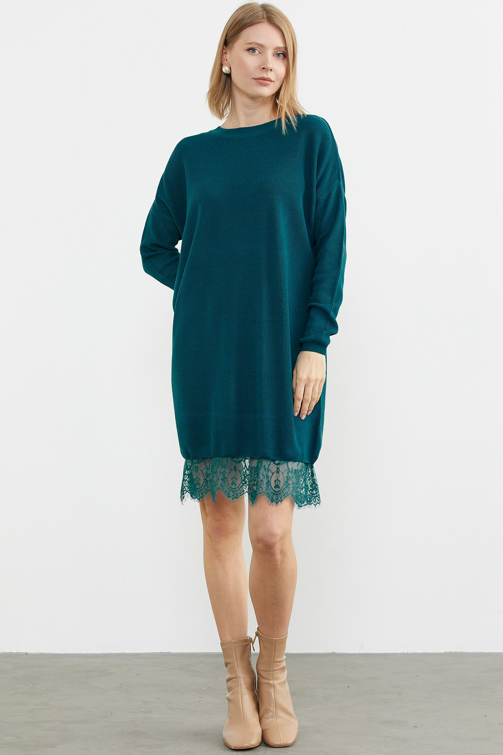 Dantel Detaylı Kısa Triko Elbise - Turkuaz