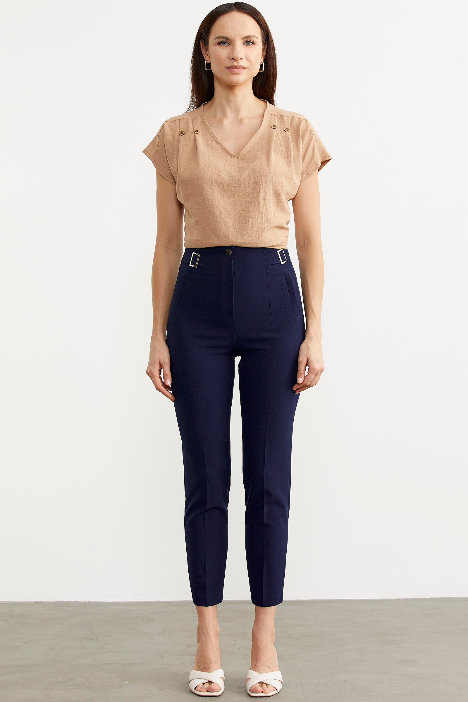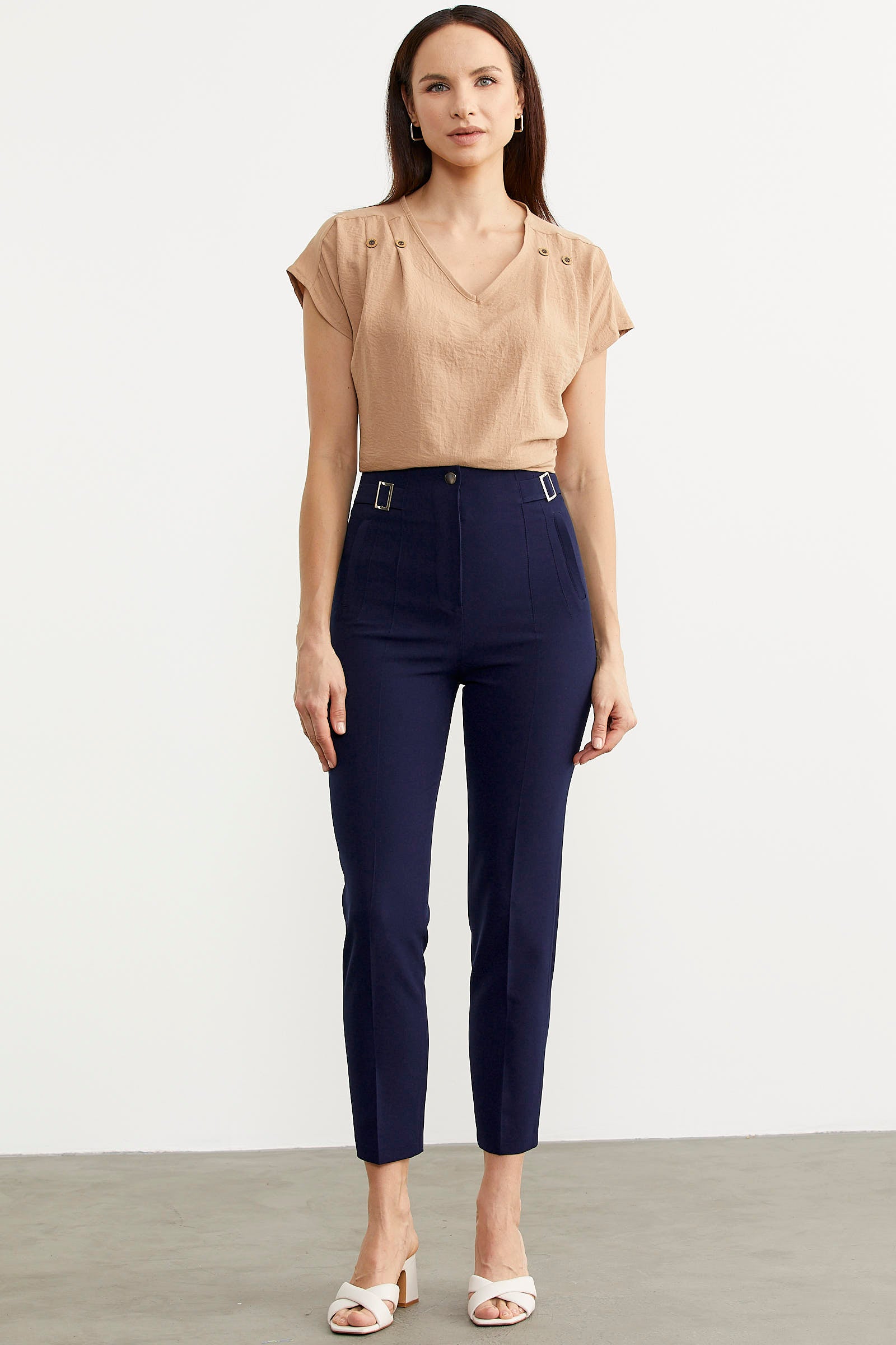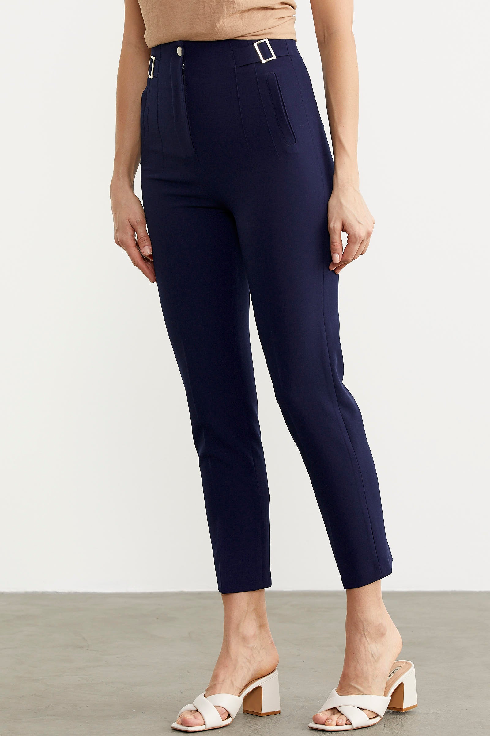 Dar Paça Yüksek Bel Kumaş Pantolon - Lacivert