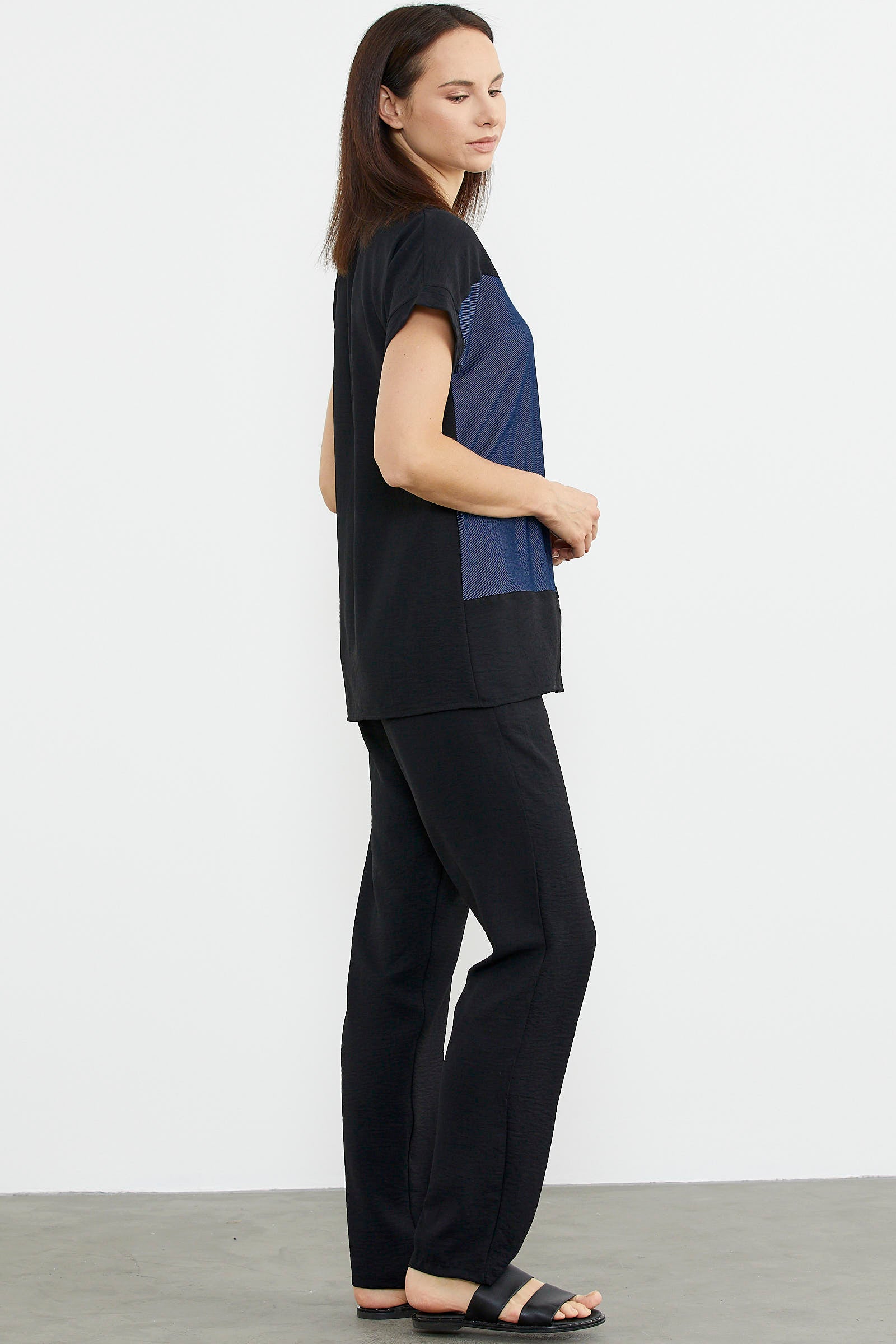 Denim Görünümlü Çift Renk Takım - Siyah