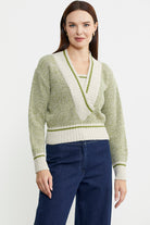 Derin V Bantlı Yünlü Triko Kazak - Bej