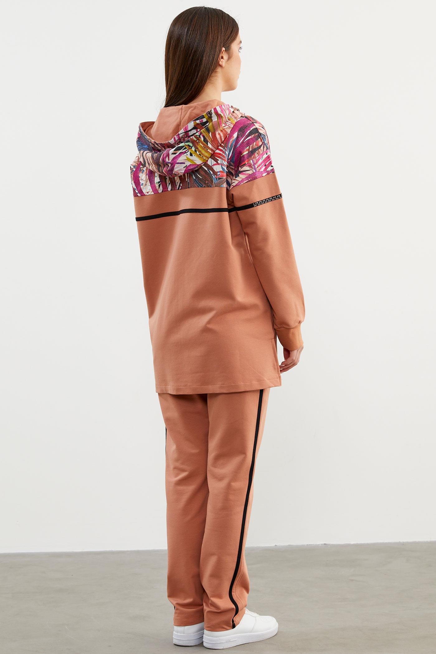 Desen Kombinli Fermuarlı Eşofman Takım - Somon