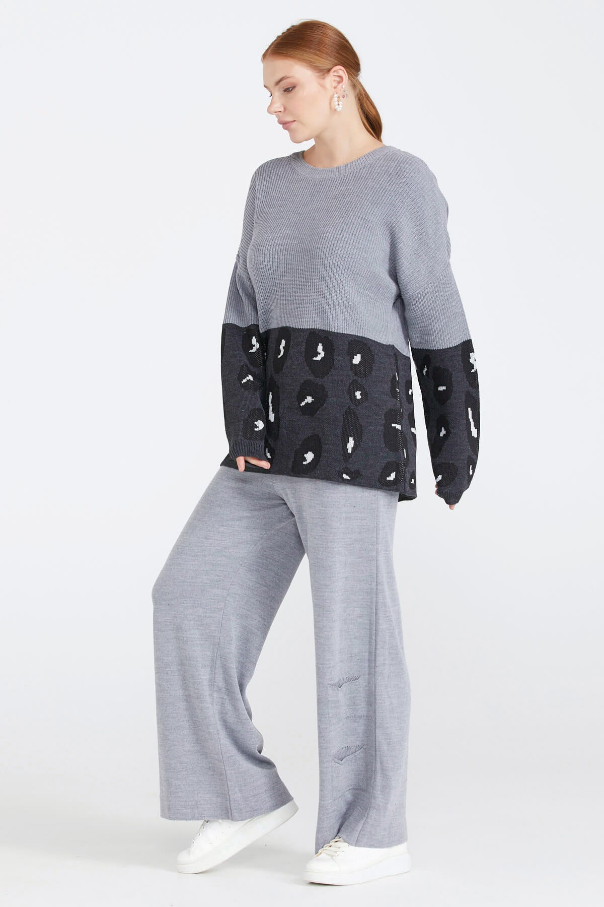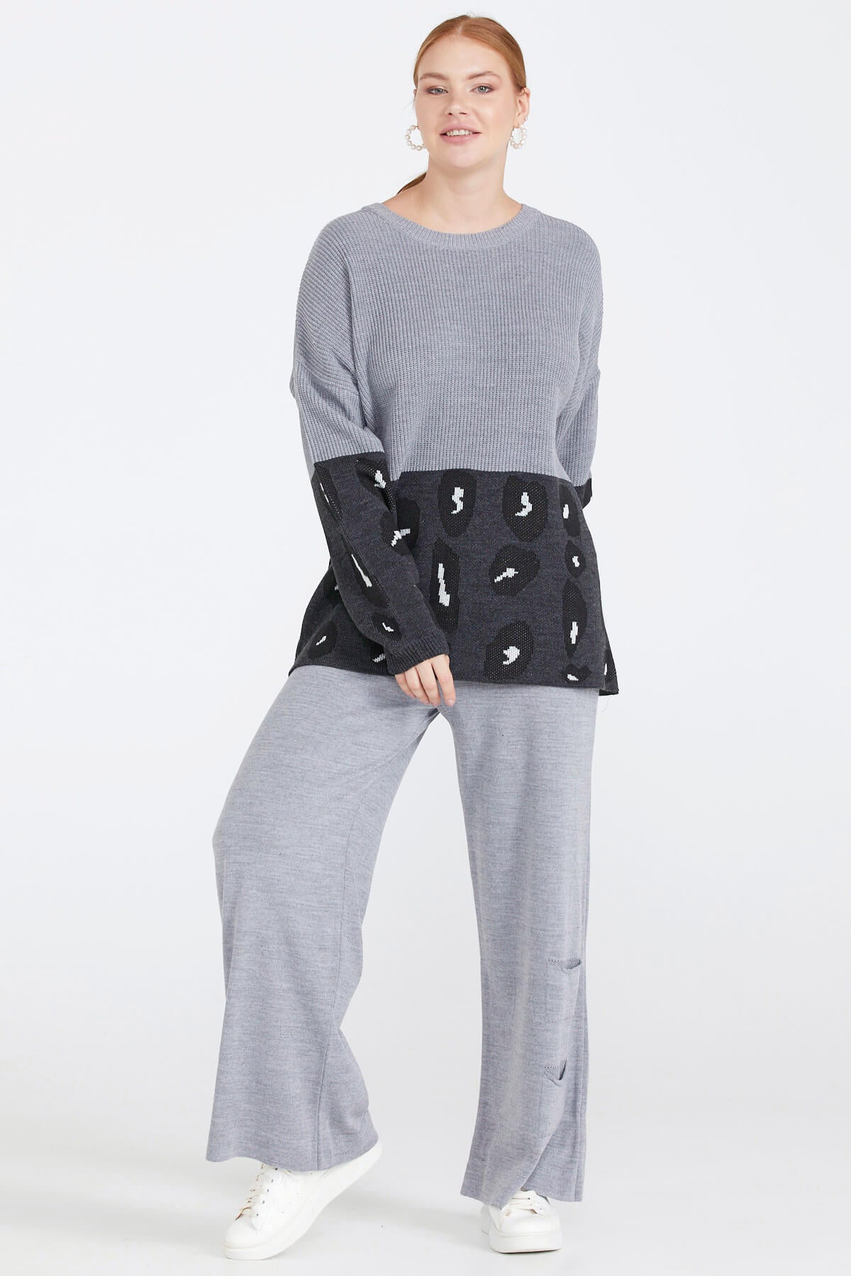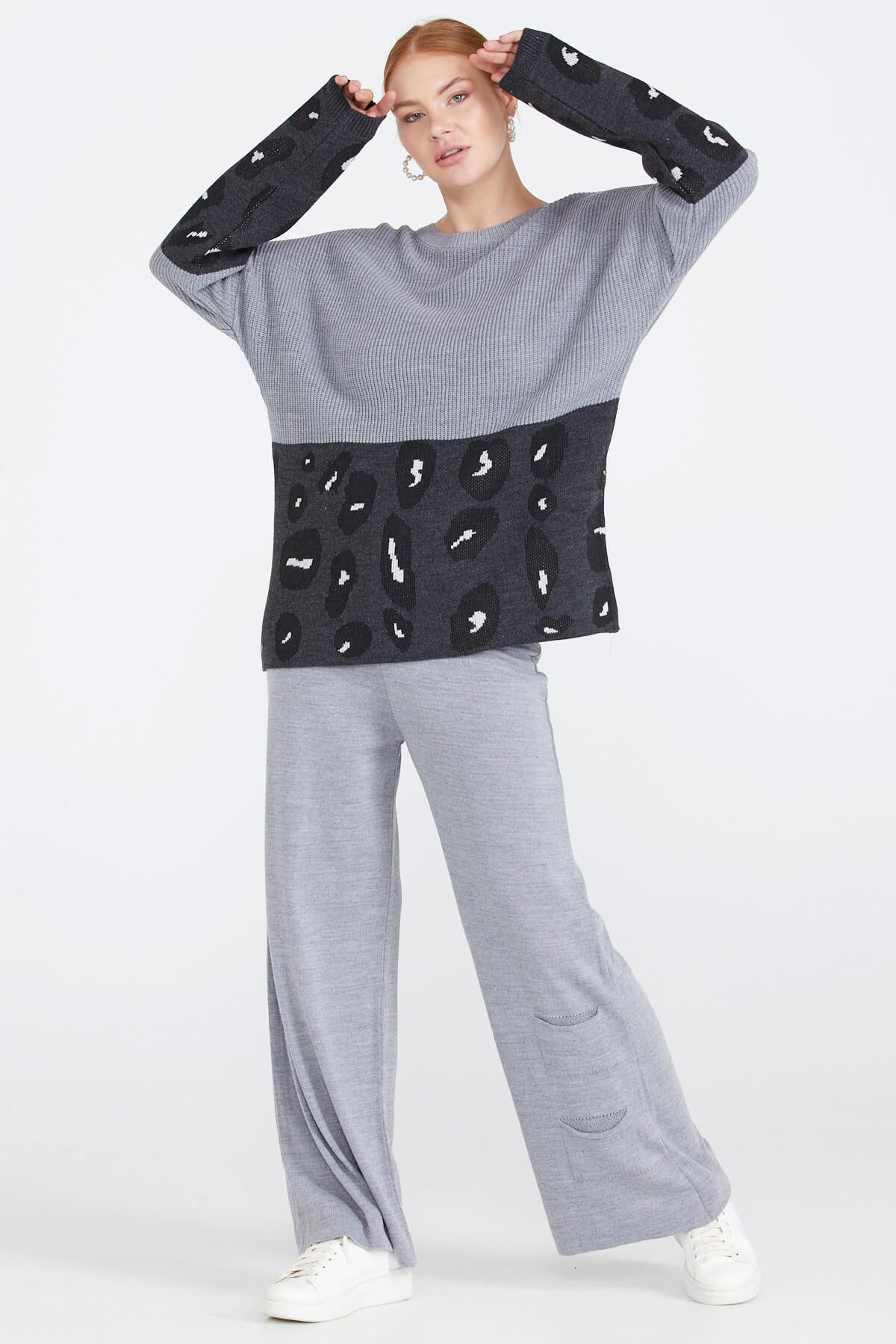 Kollarında ve etek ucunda bulunan desen ile tüm dikkatleri üzerinize çekecek olan kazağı, triko etek ve pantolonlarınız ile kolaylıkla kombinleyebilirsiniz.