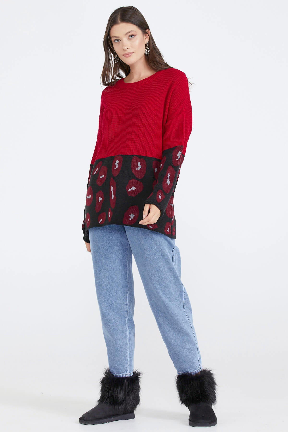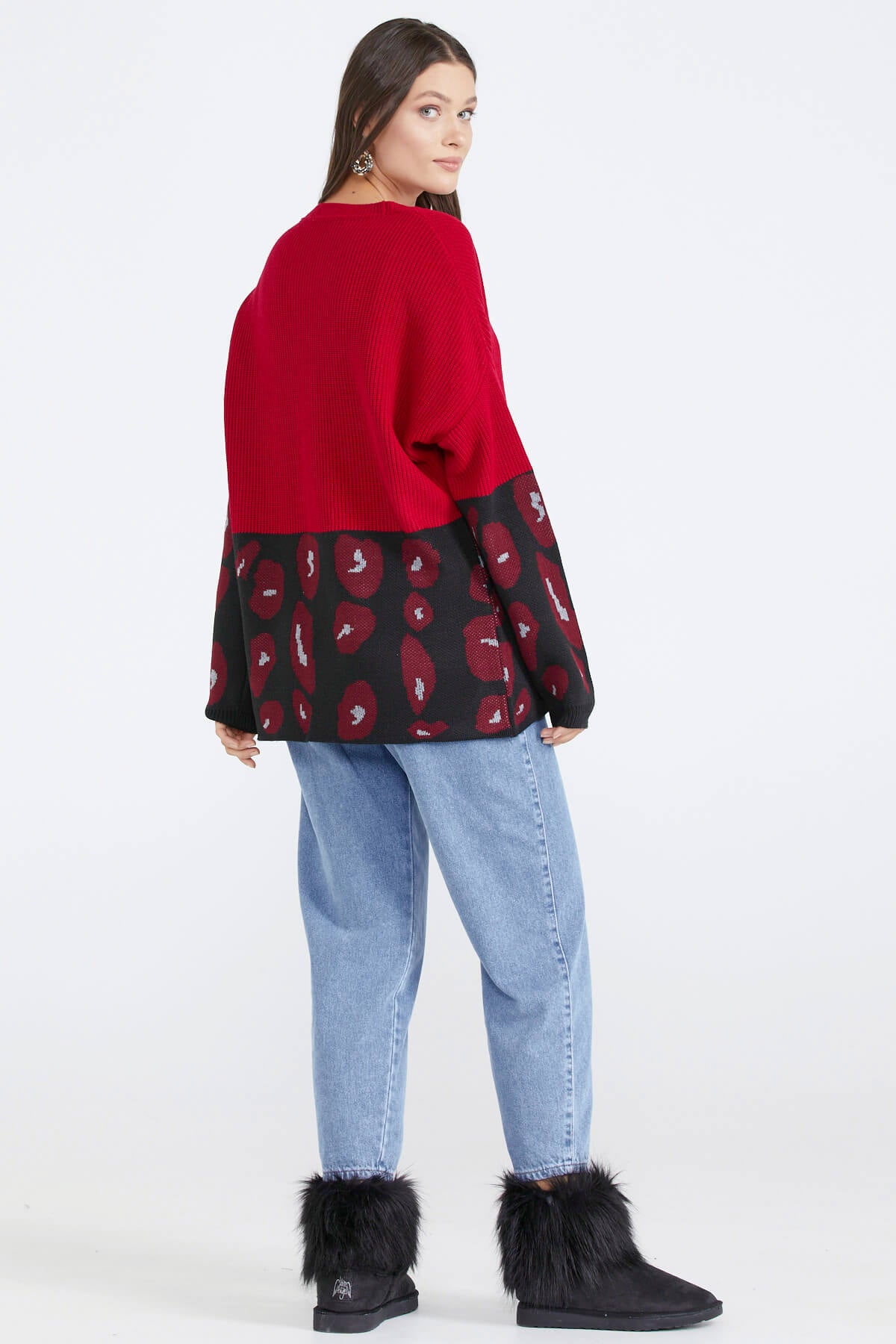 Kollarında ve etek ucunda bulunan desen ile tüm dikkatleri üzerinize çekecek olan kazağı, triko etek ve pantolonlarınız ile kolaylıkla kombinleyebilirsiniz.