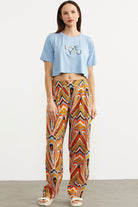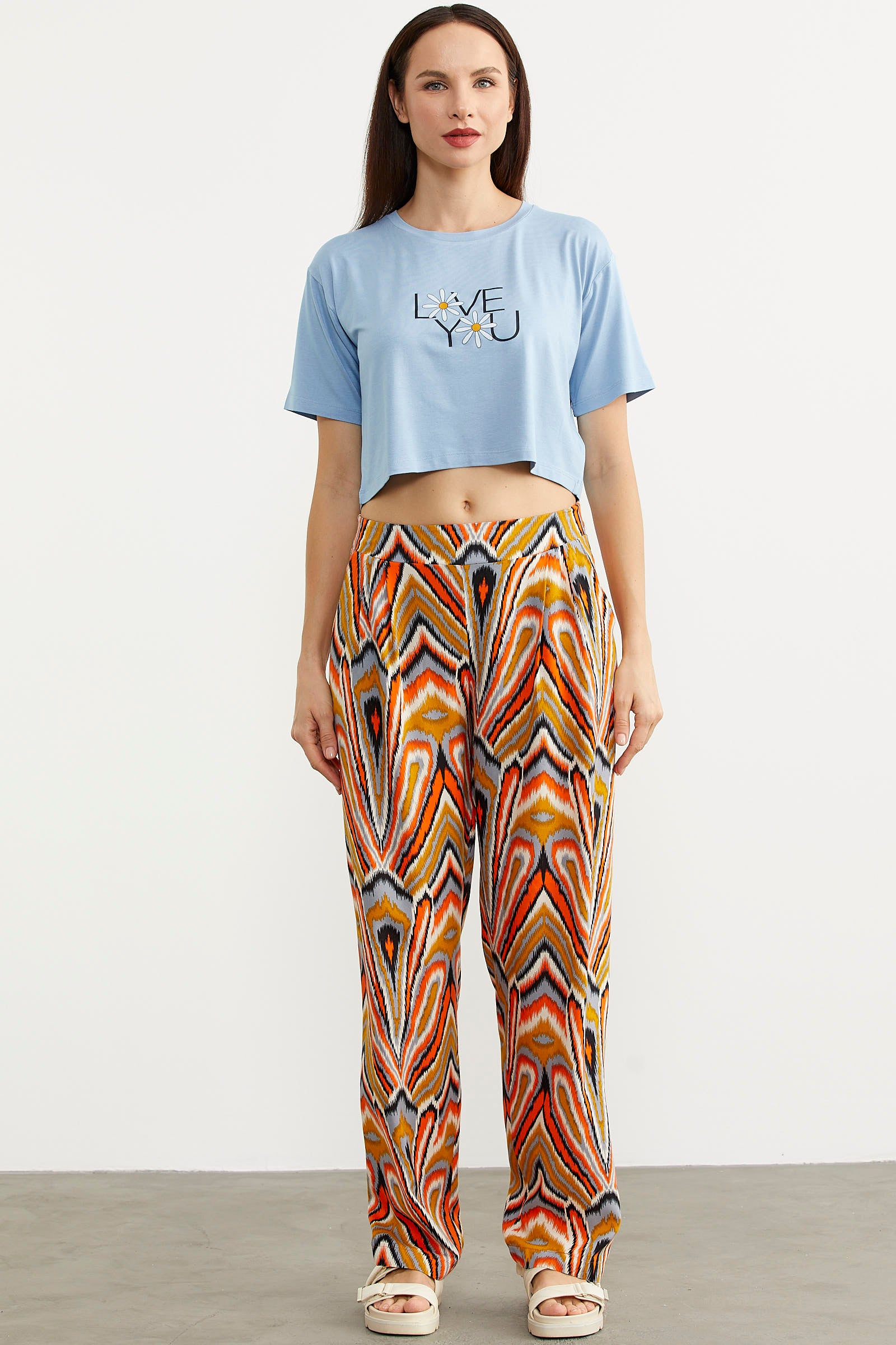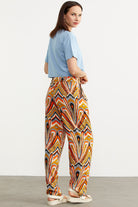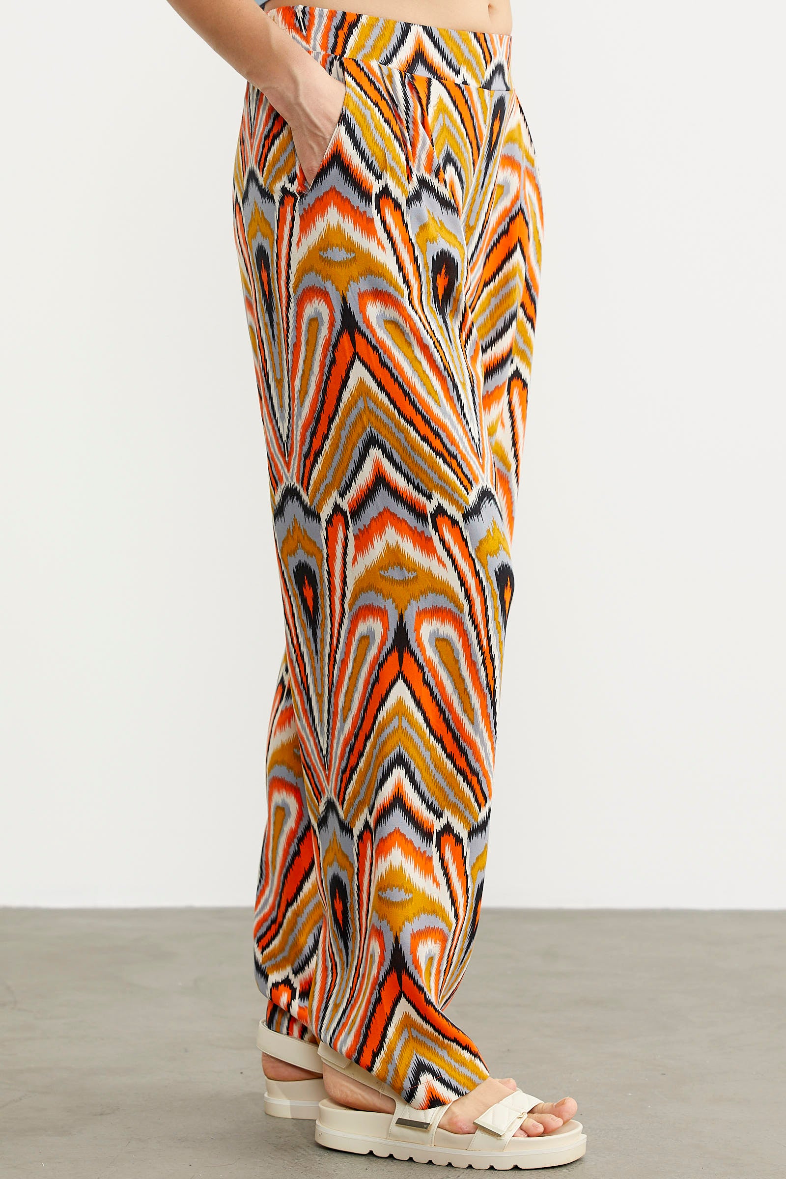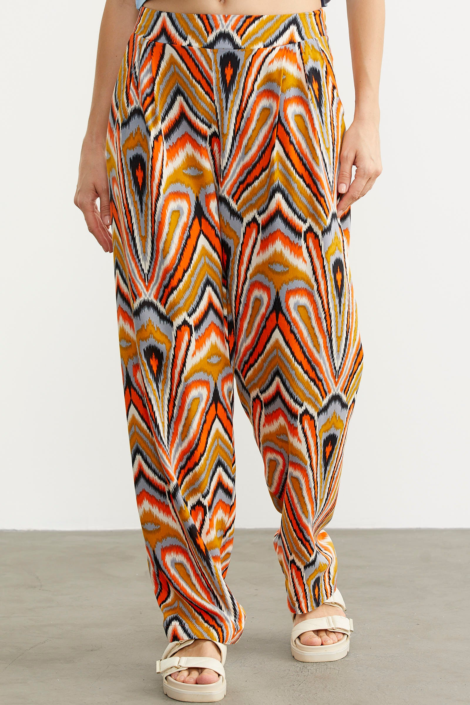 Desenli Viskon Dökümlü Pantolon - Turuncu
