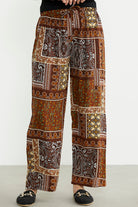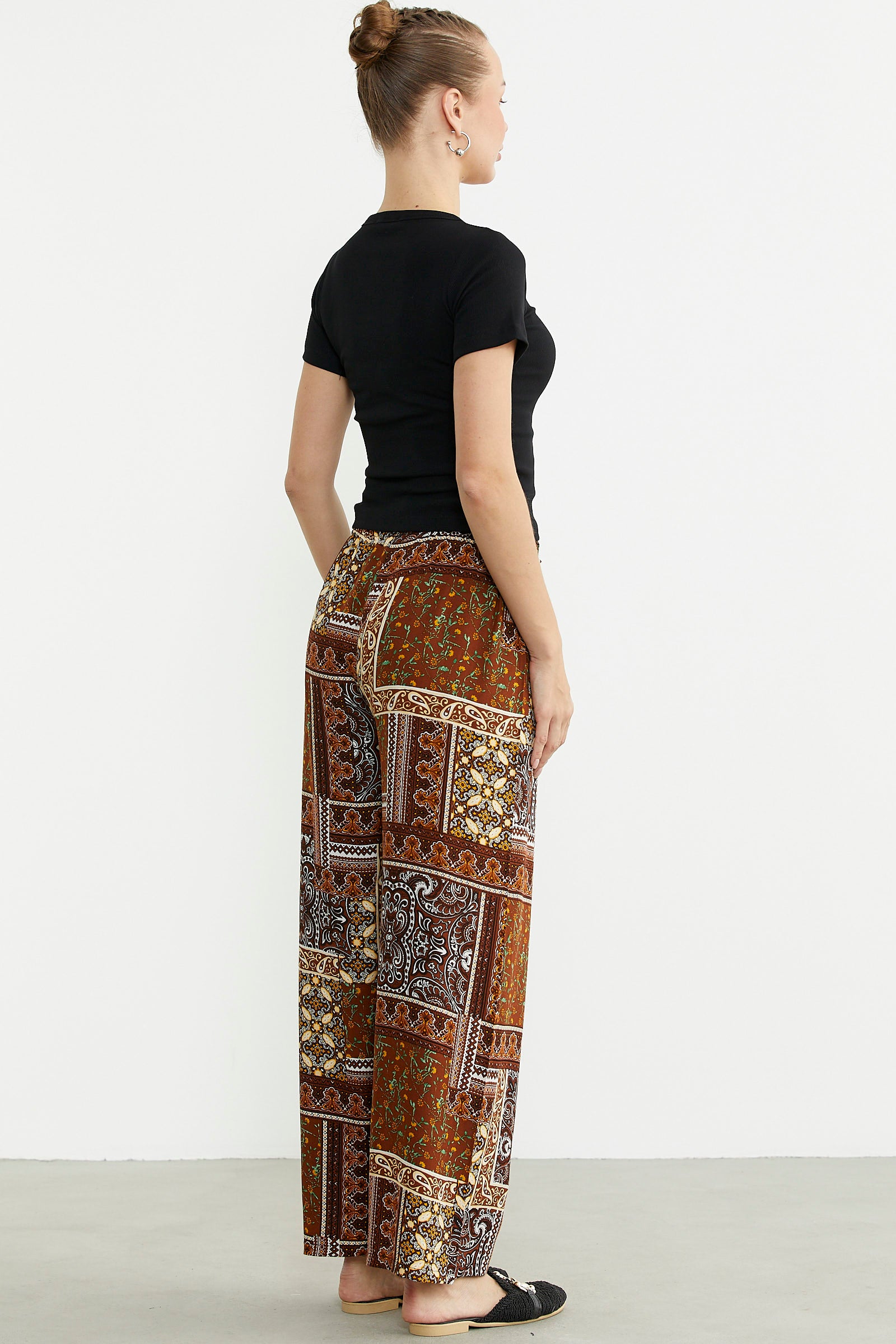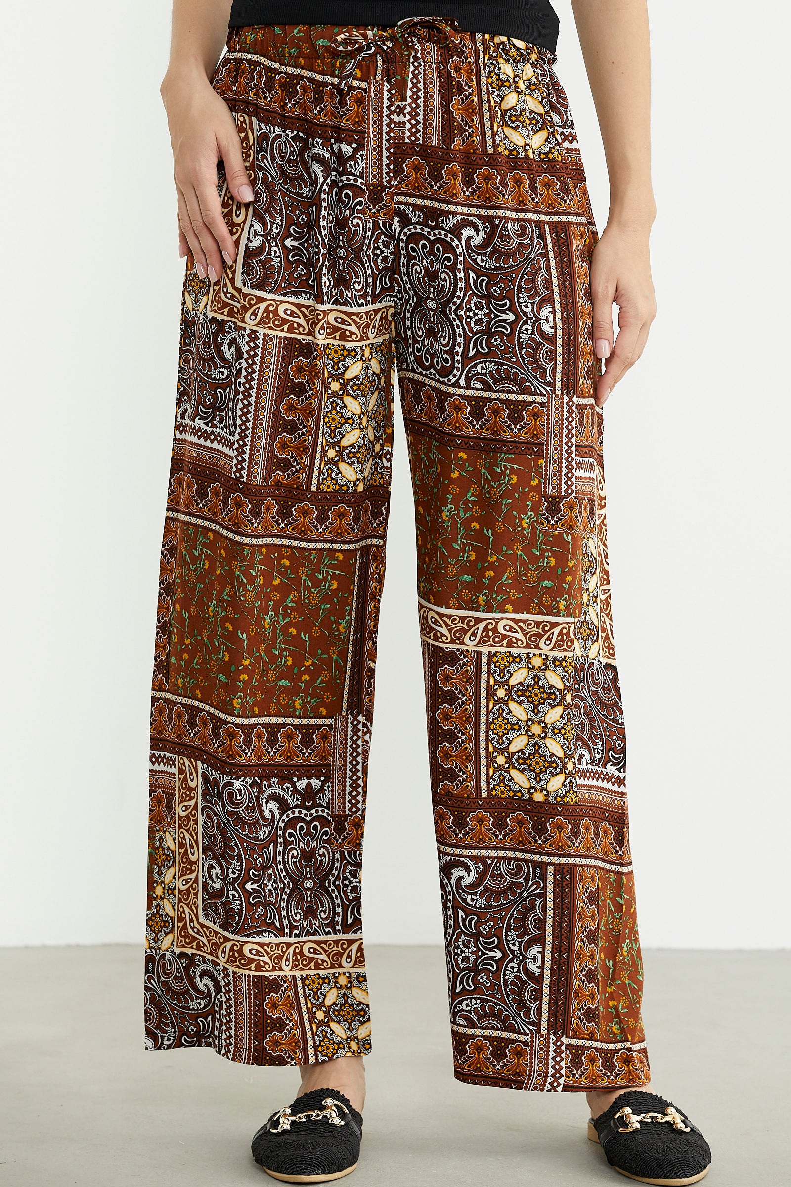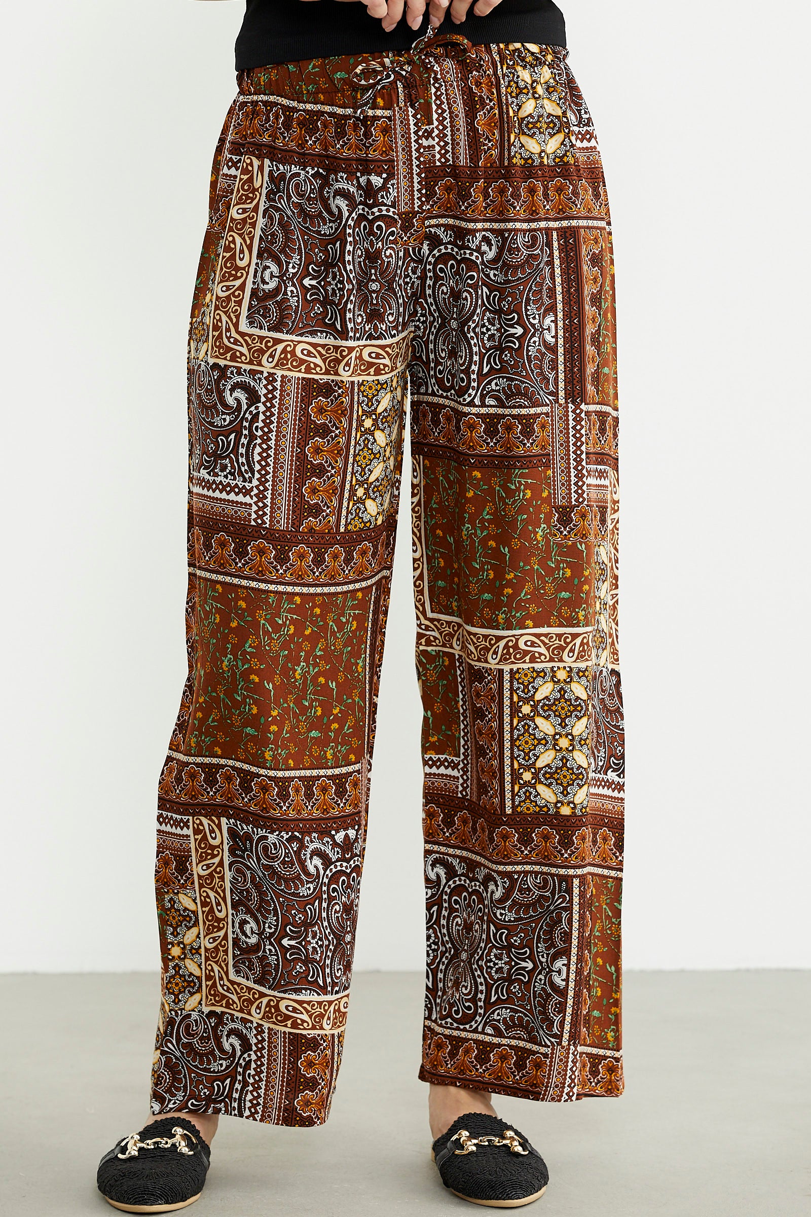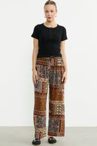 Desenli Yüksek Bel Viskon Pantolon - Kahve