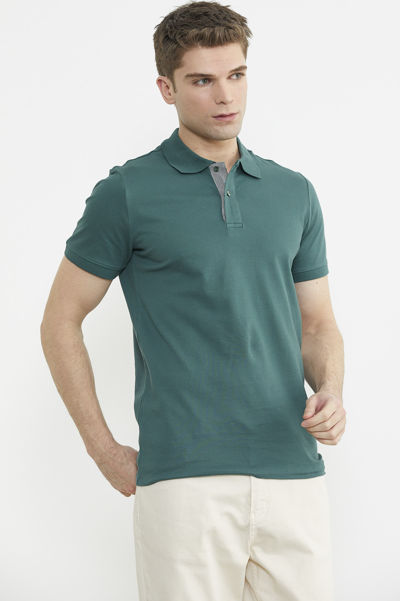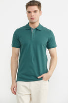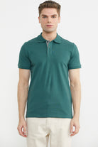 Detaylı Polo Yaka Kısa Kol Tişört - Nefti