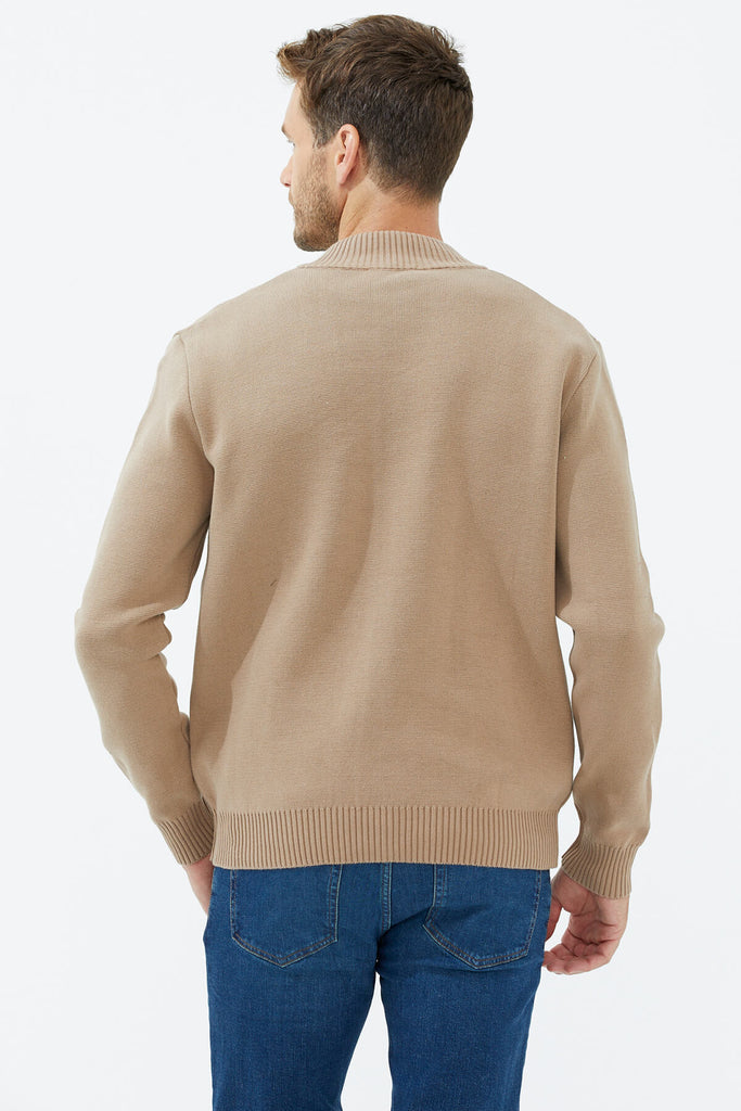 Dik Yaka Düğmeli Triko Hırka - Kamel