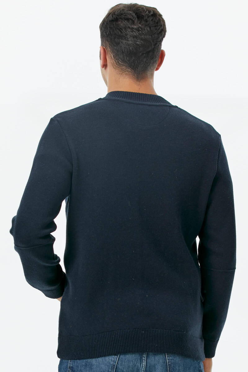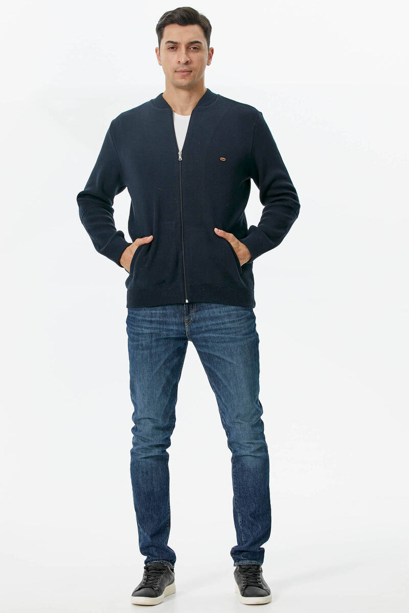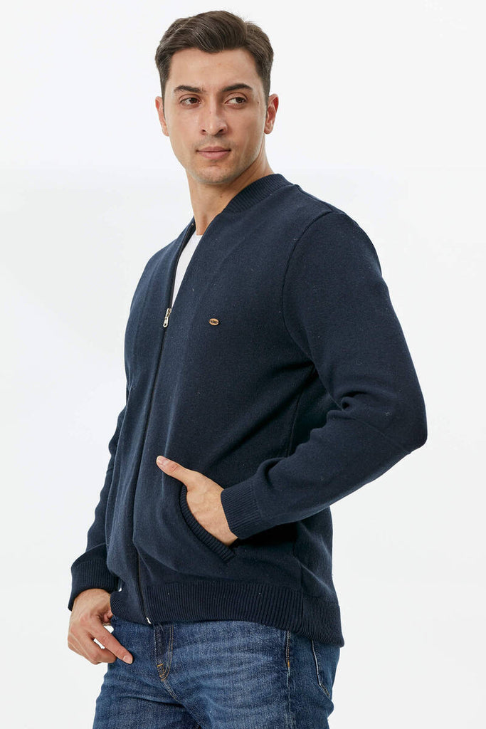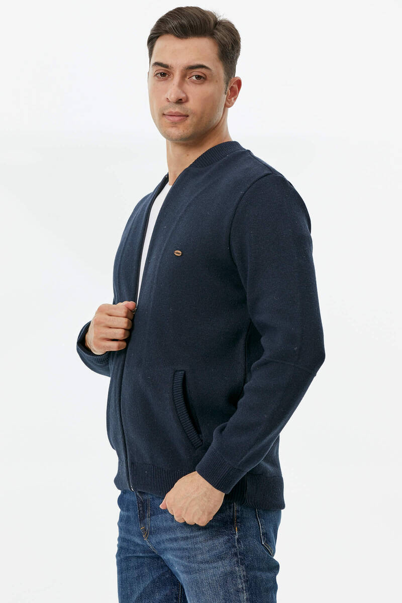 Dik Yaka Fermuarlı Cepli Triko Hırka - Lacivert