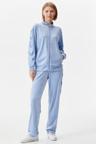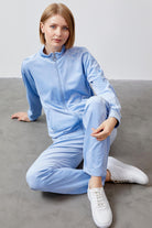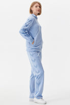 Dik Yaka Fermuarlı Kadife Eşofman Takım - Mavi