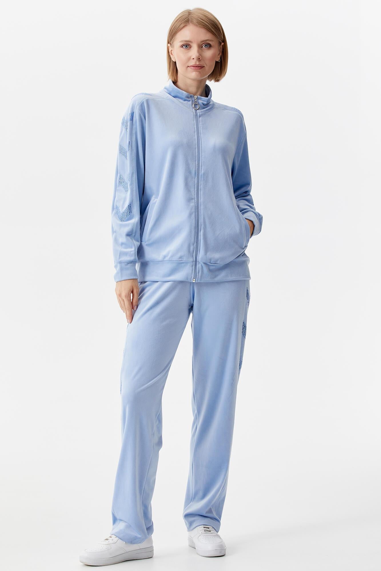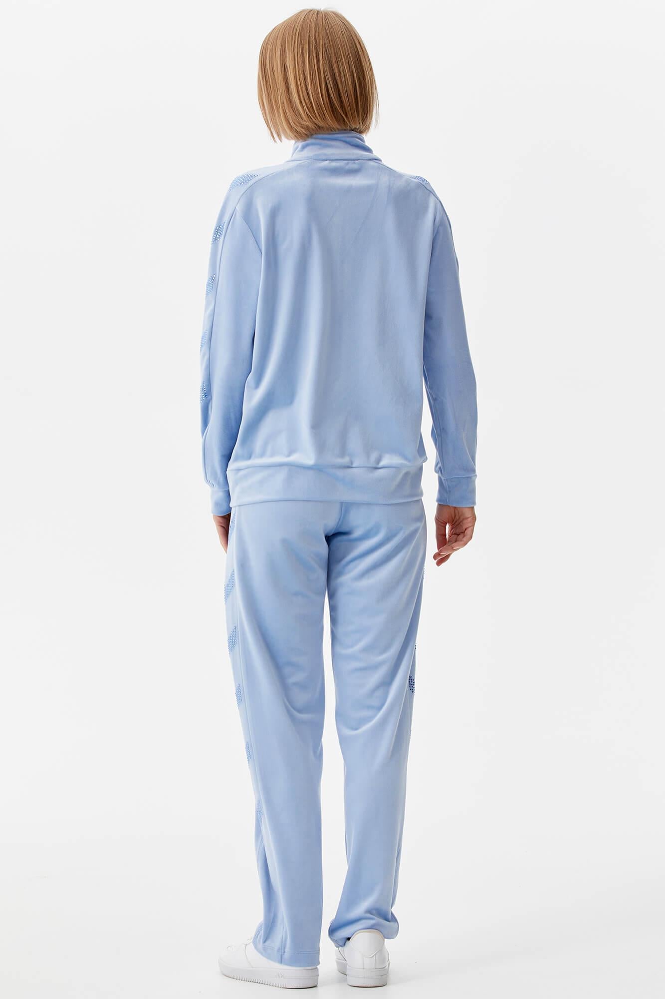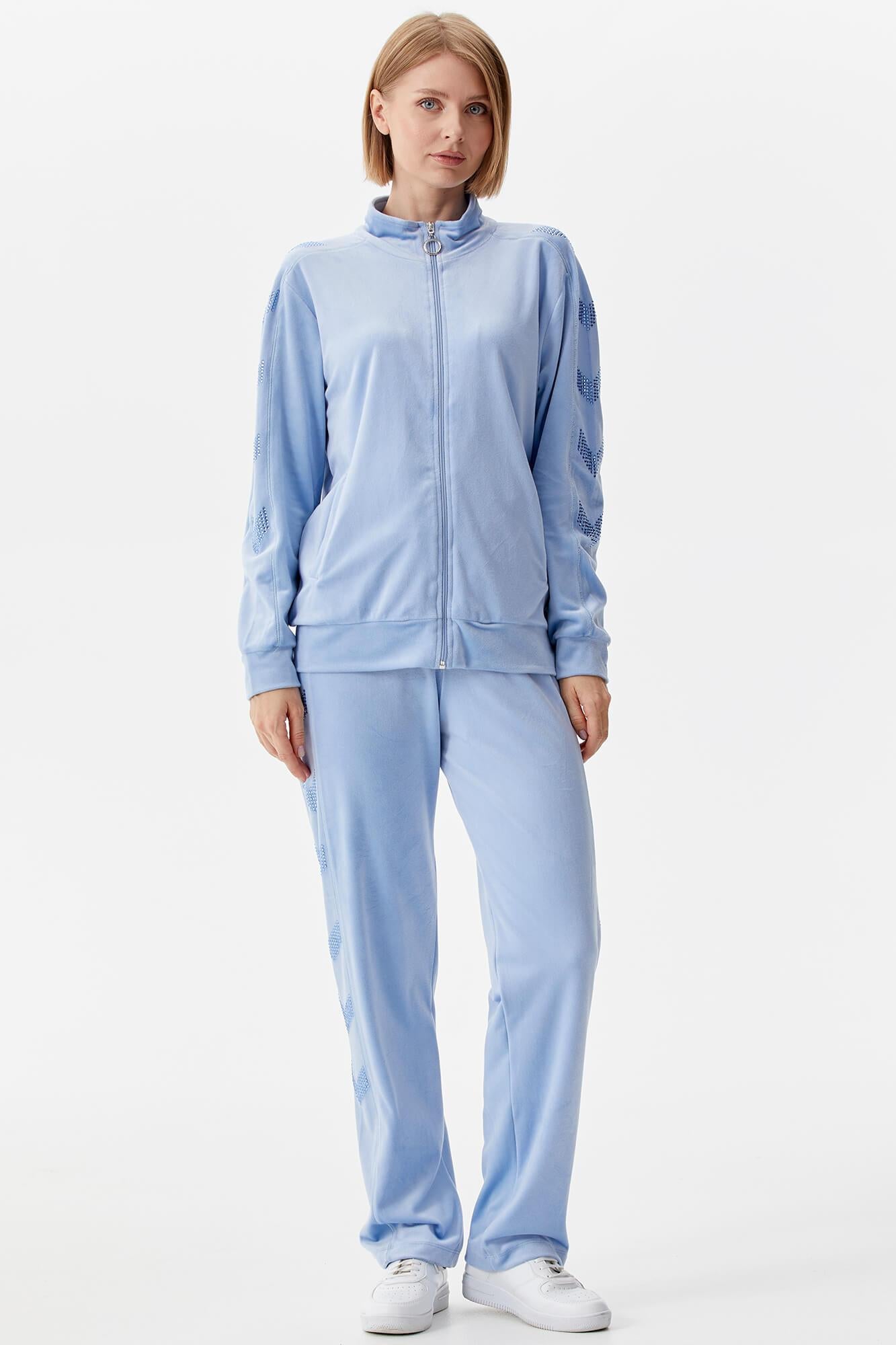 Yumuşak kadifeden üretilen, fermuarlı, kolları taş detaylı sweatshirt ve beli lastikli, boru paça, yanları taşlı eşofman altından oluşan basic takım ile her durumda çok şık görüneceksin.