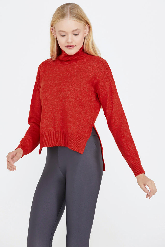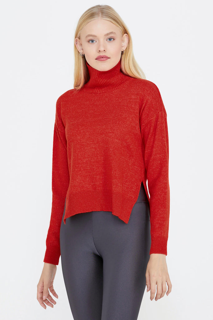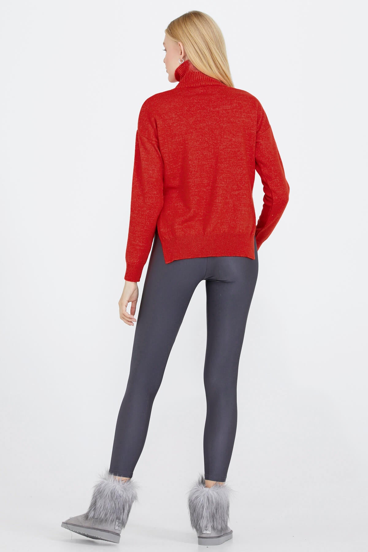 Dik Yakalı Kadın Triko Kazak - Kırmızı