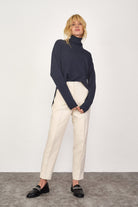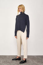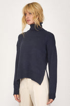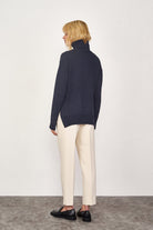 Dik Yakalı Kadın Triko Kazak - Lacivert