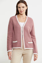 Dilimli Yaka Detaylı Kısa Yün Triko Hırka - Gül