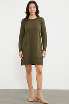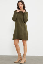 Diz Üstü Saç Örgü Motifli Triko Elbise - Haki