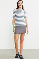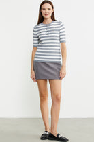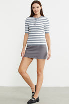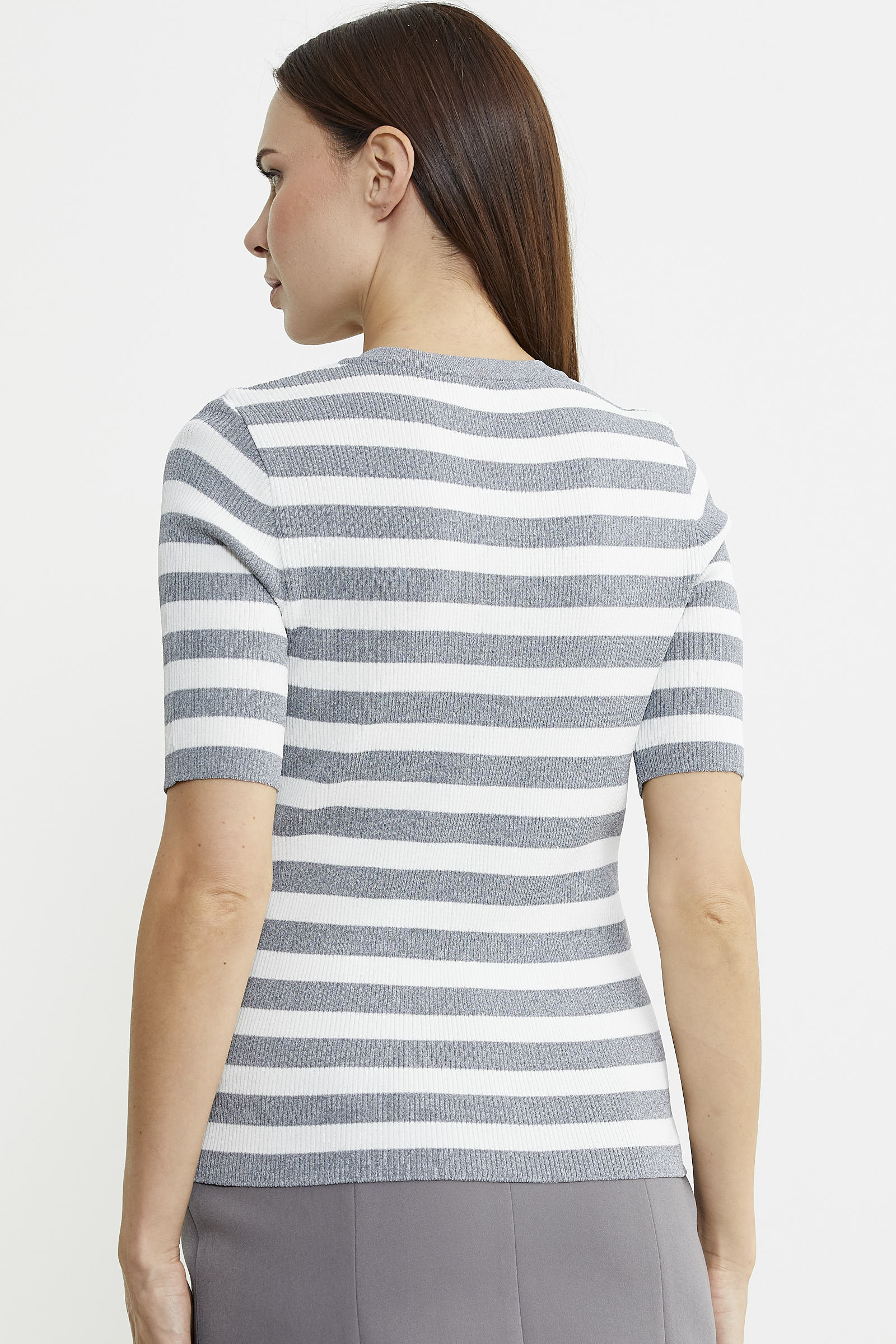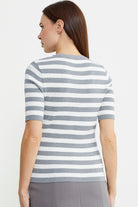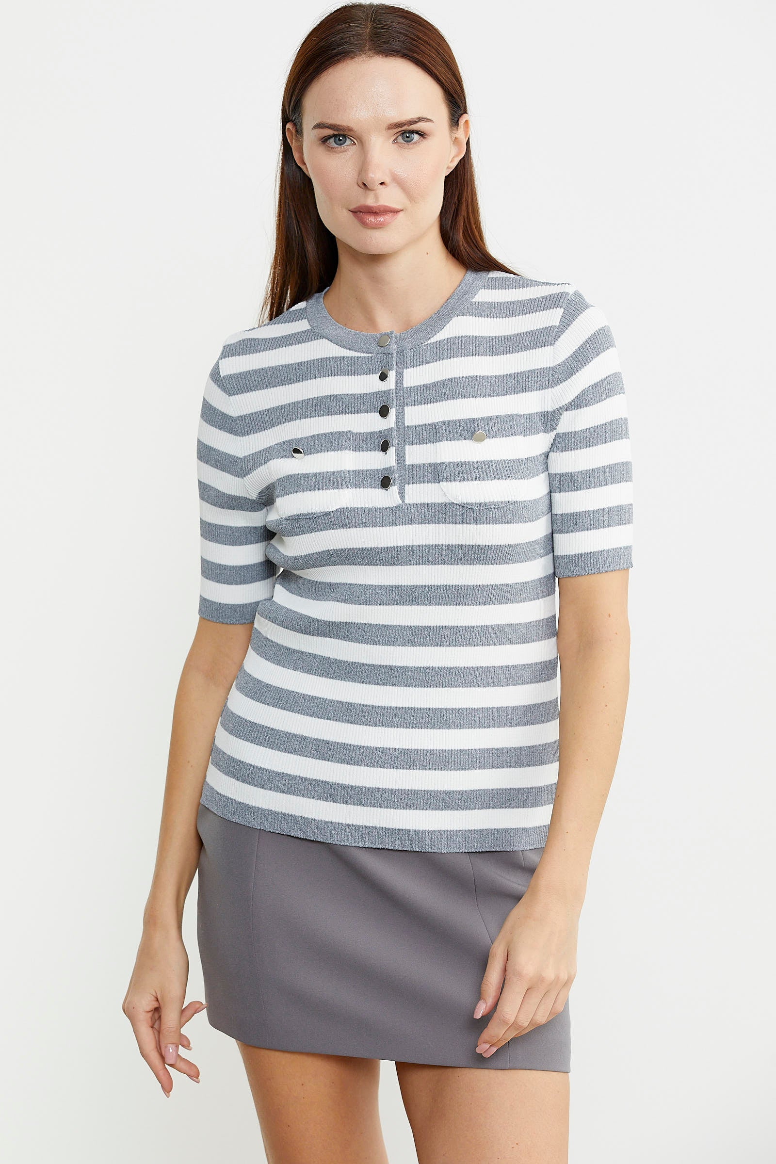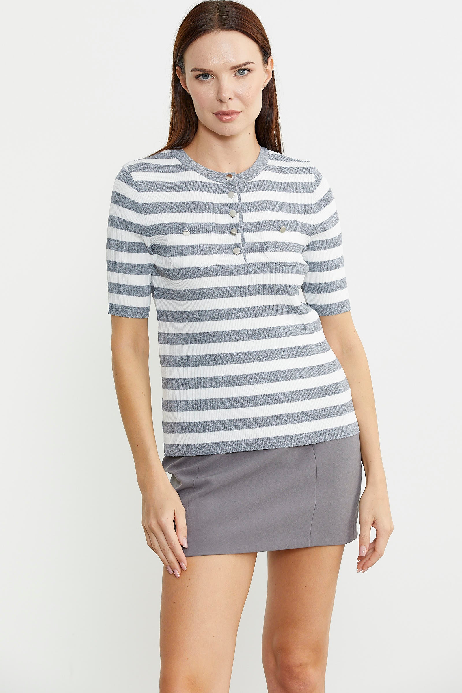 Düğme Detaylı Çizgili Triko Kazak - Gri