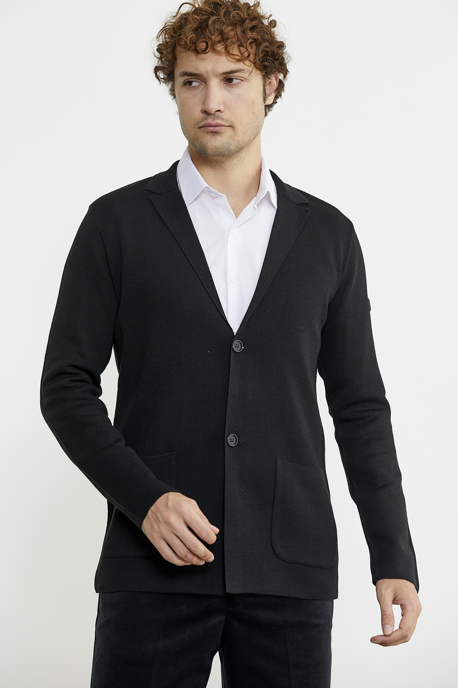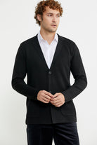 Düğmeli Cep Detaylı Triko Ceket - Siyah