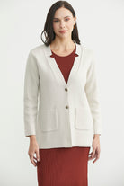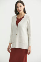 Düğmeli Cep Detaylı Yünlü Triko Ceket - Açık Bej
