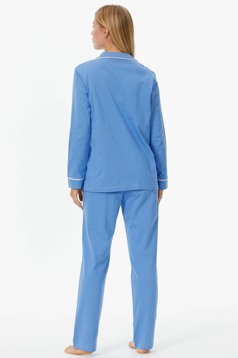 Düğmeli Gömlek Yaka Pijama - Mavi