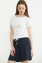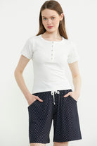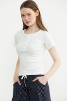Düğmeli Kısa Kol Basic Tişört - Ekru