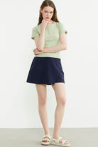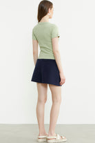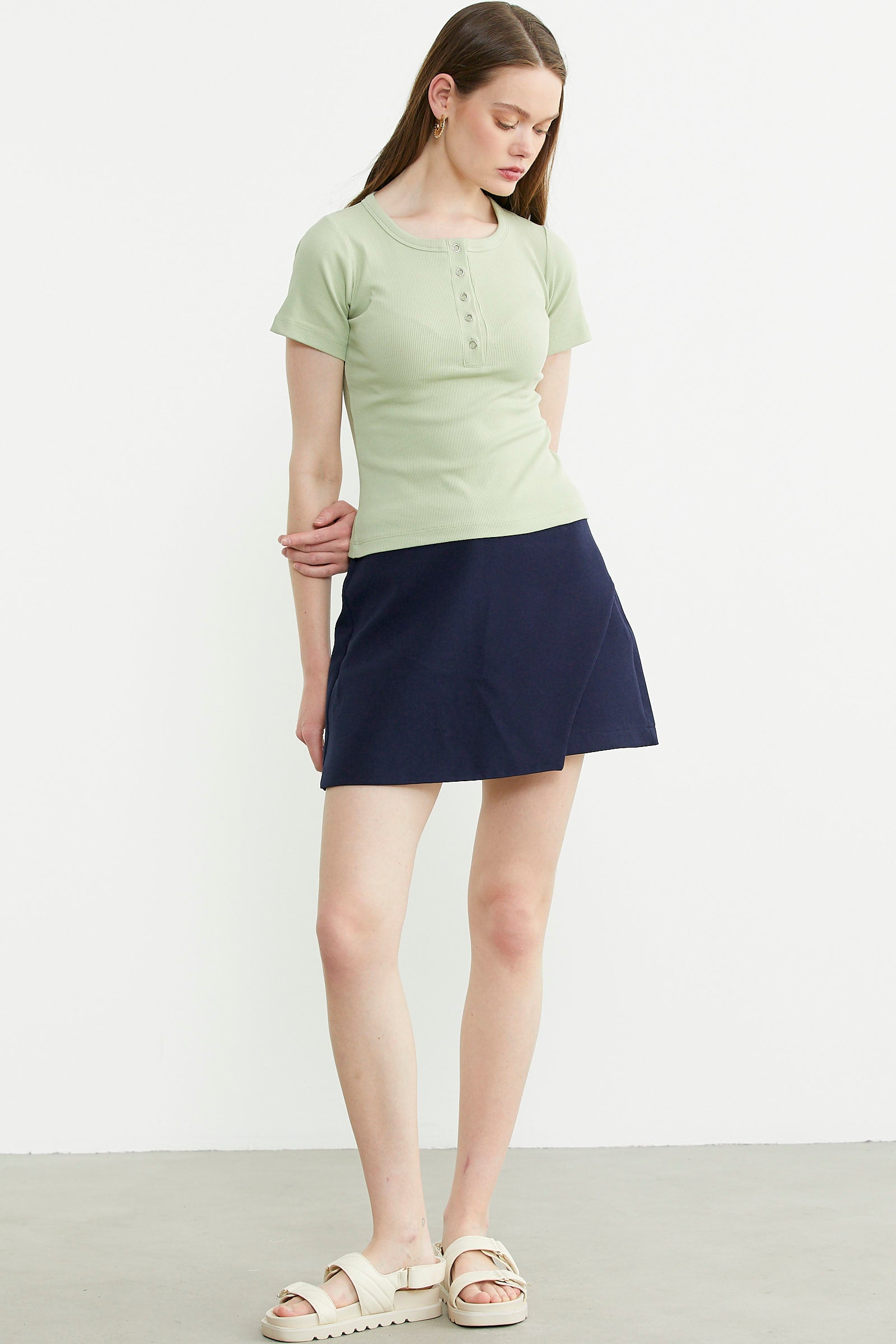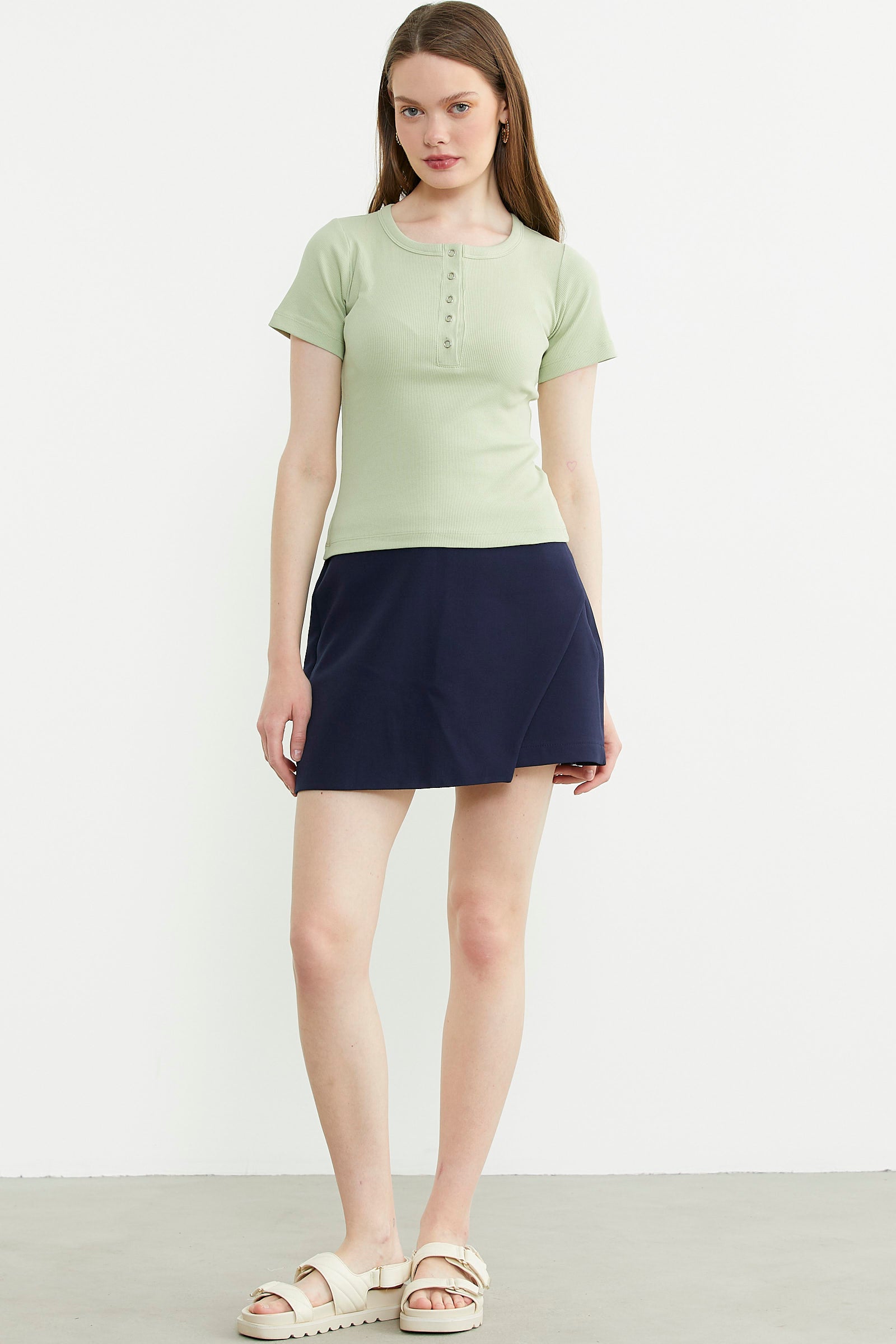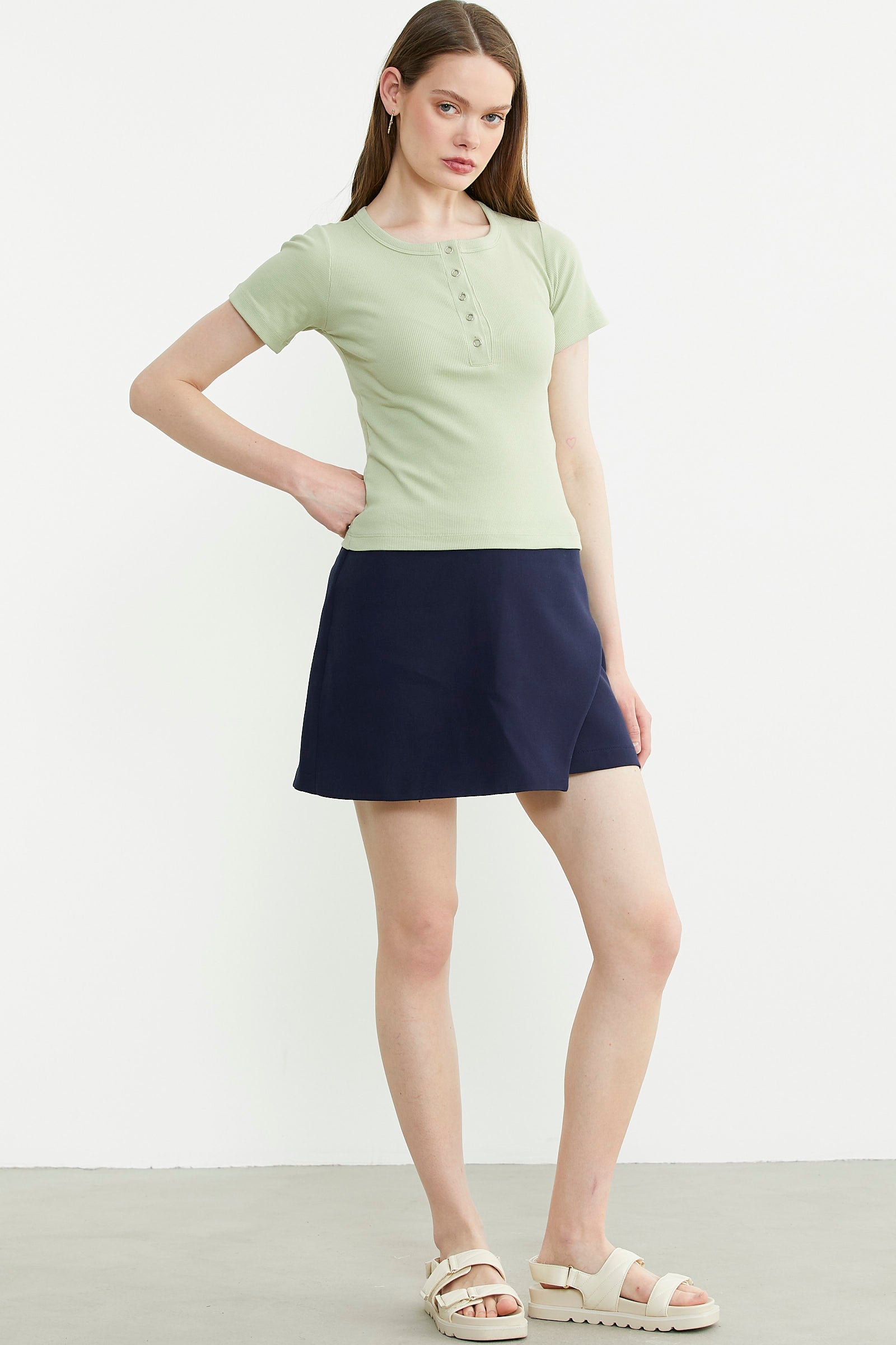 Düğmeli Kısa Kol Basic Tişört - Yeşil