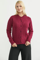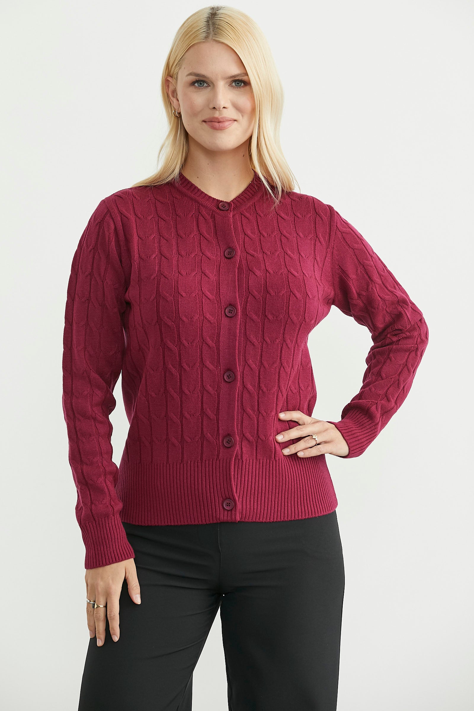 Düğmeli Sıfır Yaka Triko Hırka - Bordo