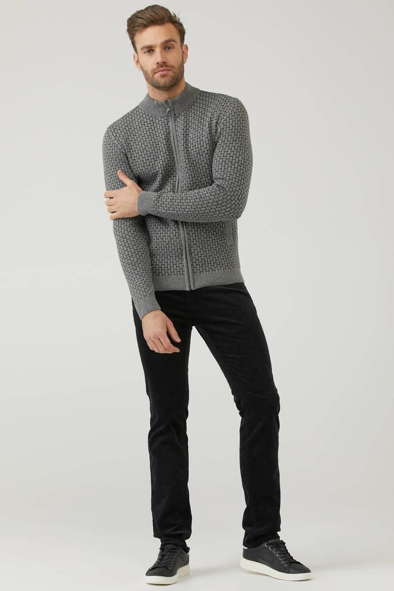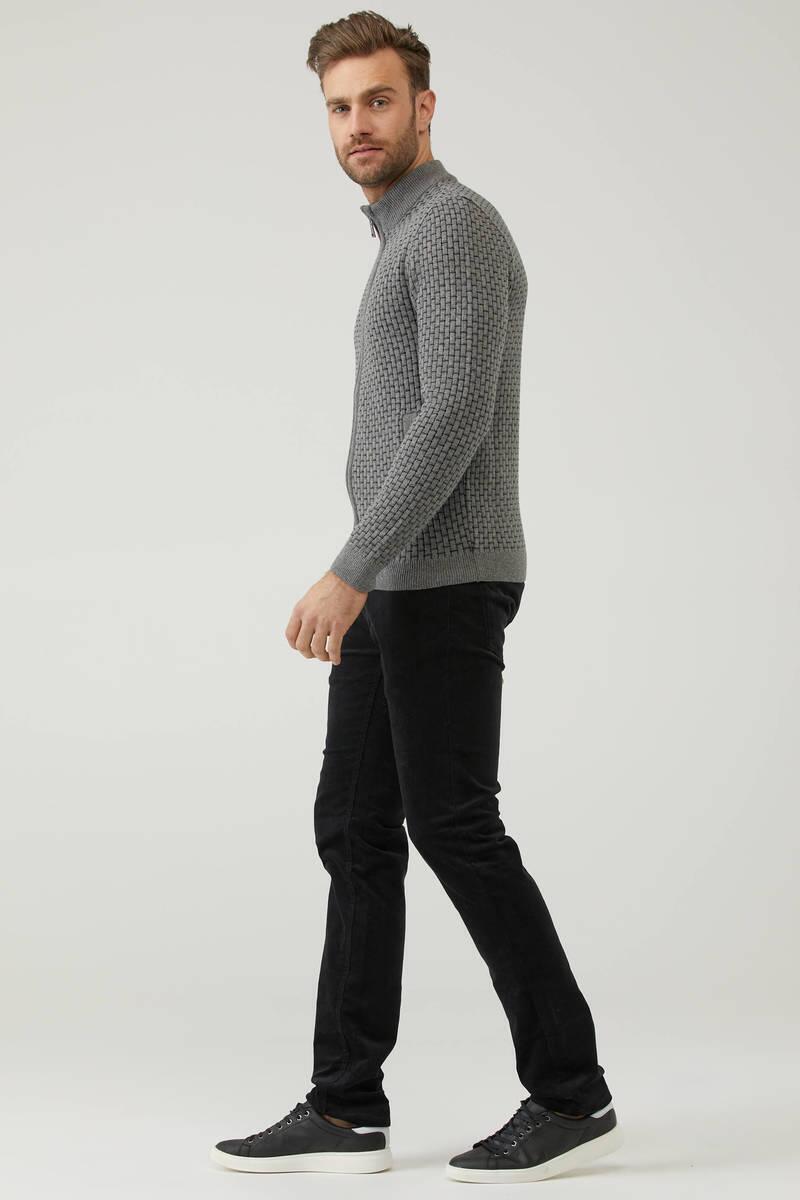 Erkek Fermuarlı Cepli Triko Hırka - Gri - Siyah